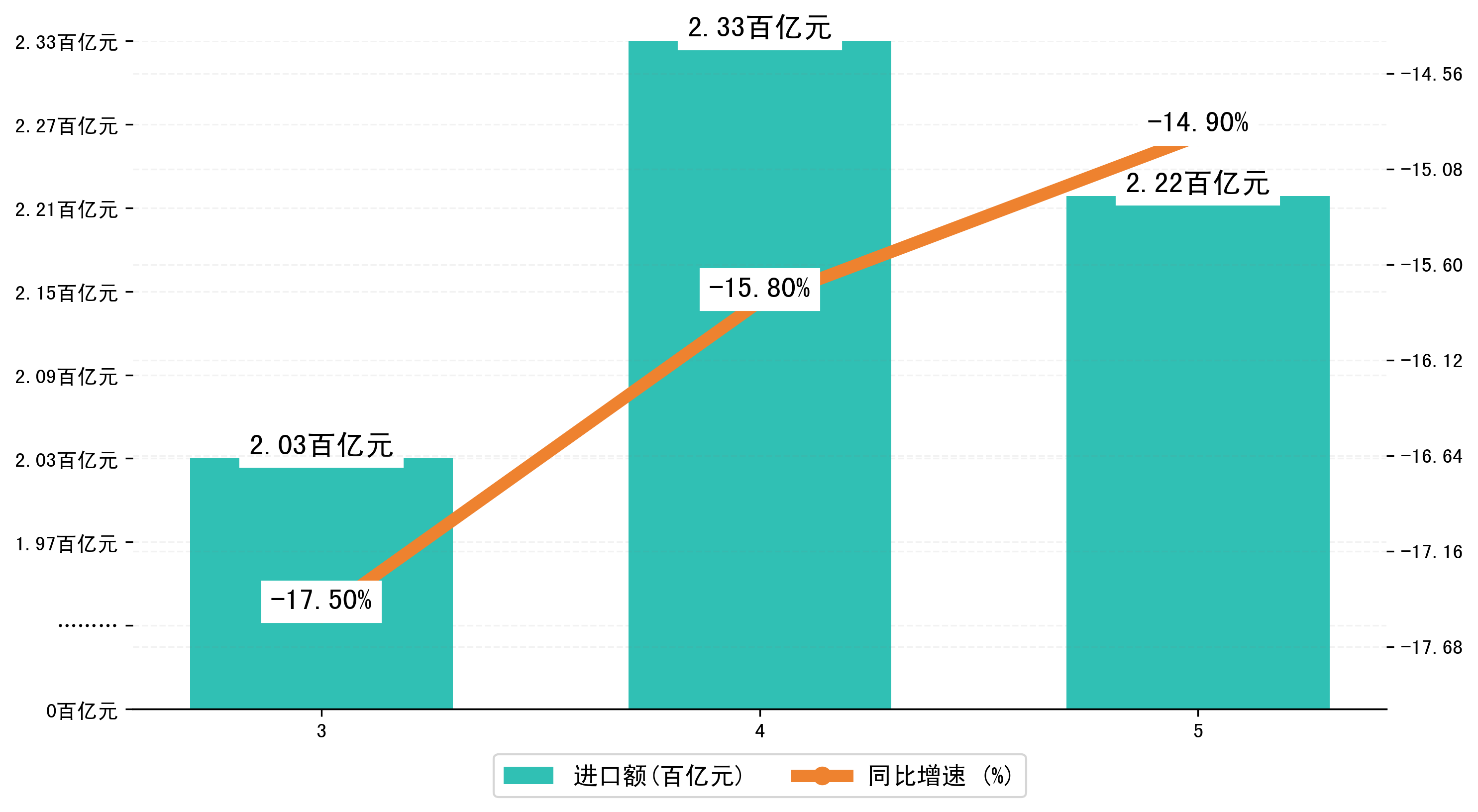 以人民币计,2023年5月安徽省进口额为221,9117.3014万元,相比上月减少了11,3022.6962万元;相比上年同期减少了40,7002.1449万元,同比减少了-14.90%。