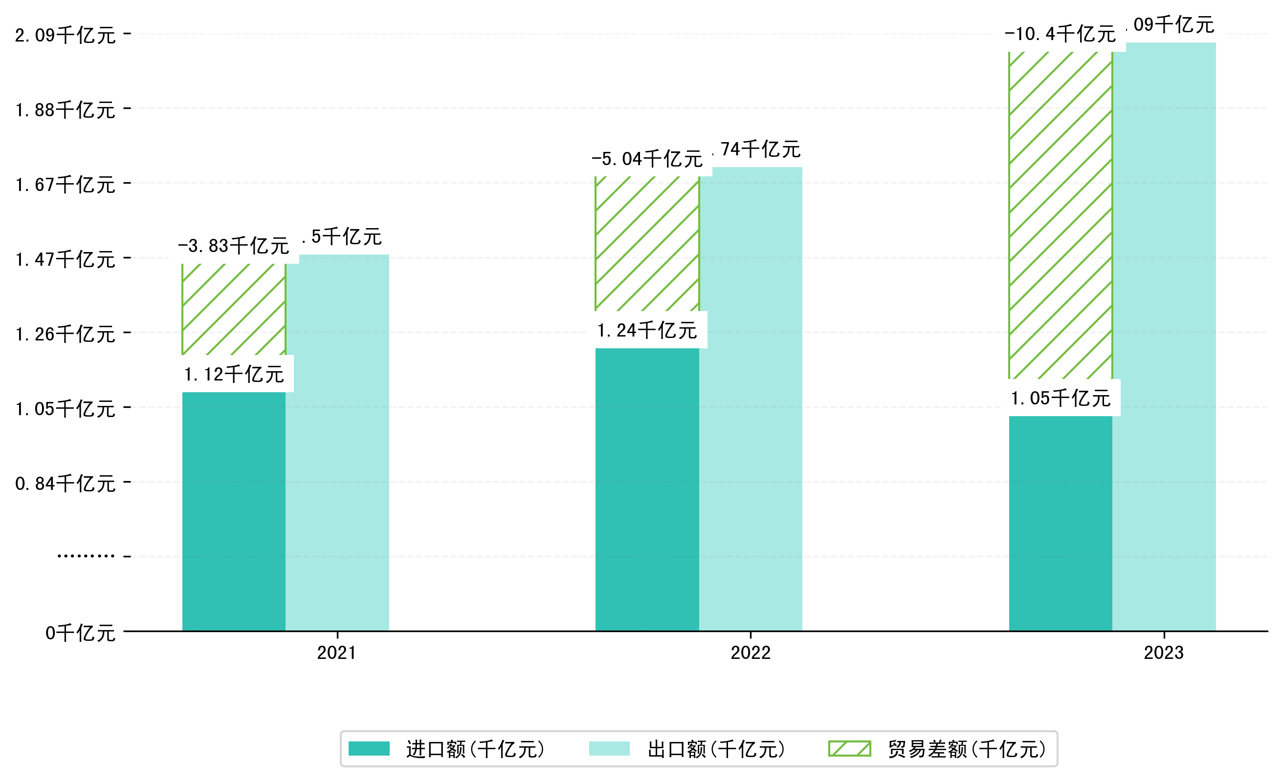 以人民币计,2023年1-5月安徽省贸易差额为1039,8843,4089万元(贸易顺差),相比上年同期增加了535,8175,1740万元,同比增加106.3%。
