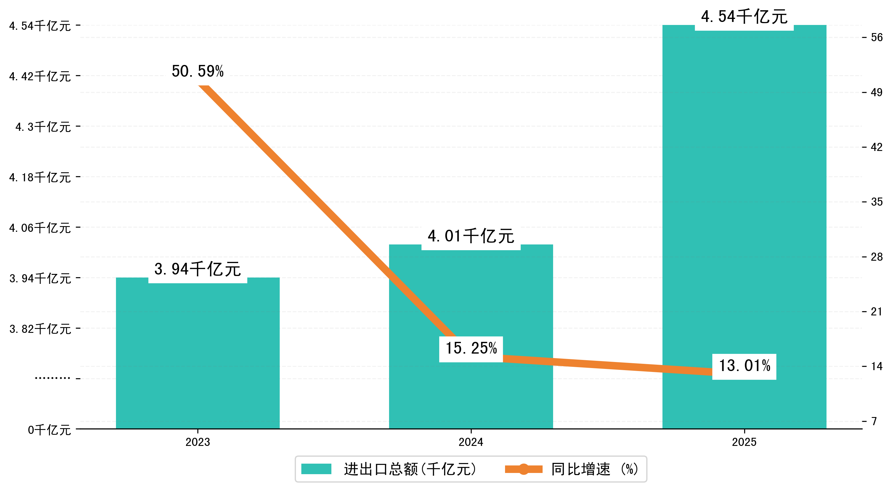 以人民币计,2025年1-7月广西壮族自治区进出口总额为4535,2787.3688万元,相比上年同期增加了521,9988.6053万元,同比增加了13.50%。