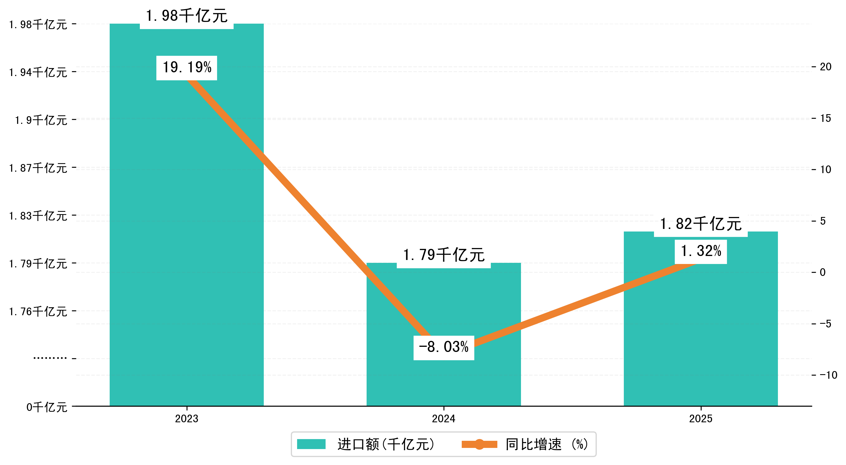 以人民币计,2025年1-7月广西壮族自治区进口额为1818,3879.1733万元,相比上年同期增加了23,7167.6939万元,同比增加了1.50%。