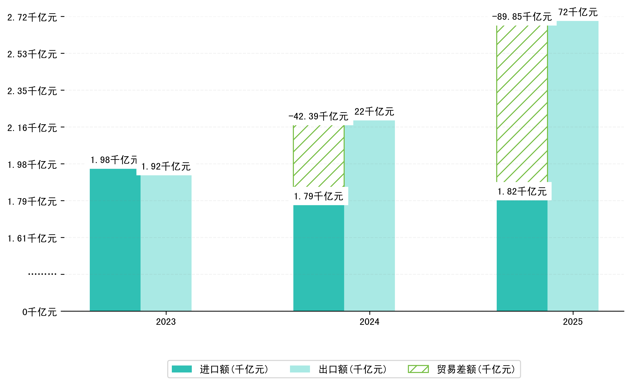以人民币计,2025年1-7月广西壮族自治区贸易差额为898,5029,0222万元(贸易顺差),相比上年同期增加了474,5653,2175万元,同比增加111.94%。