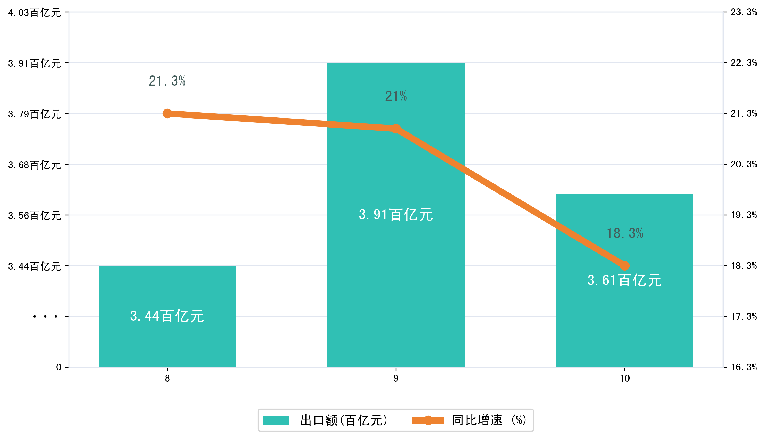 (图二:2025年8-10月广西壮族自治区出口额)