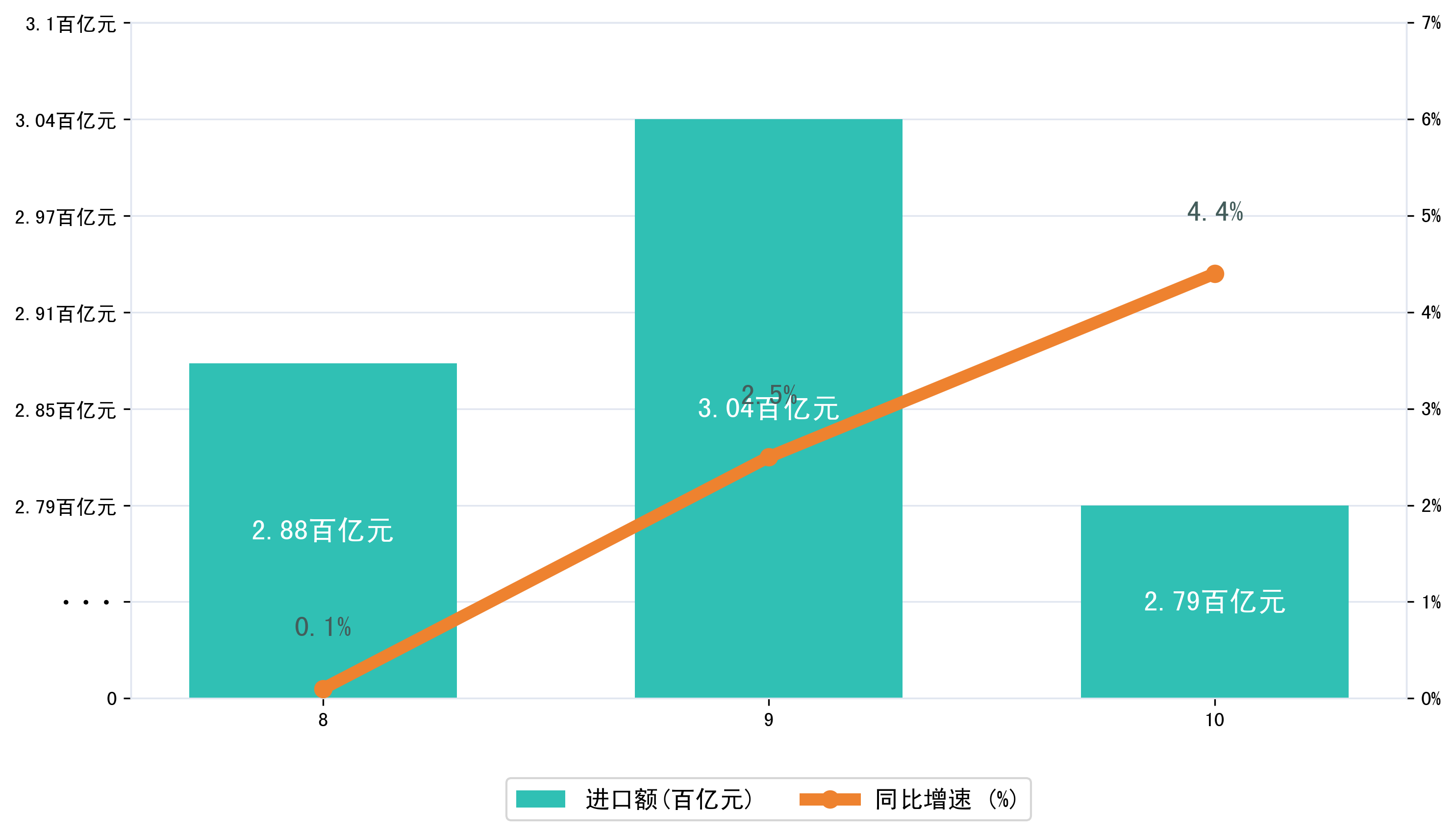 (图三:2025年8-10月广西壮族自治区进口额)