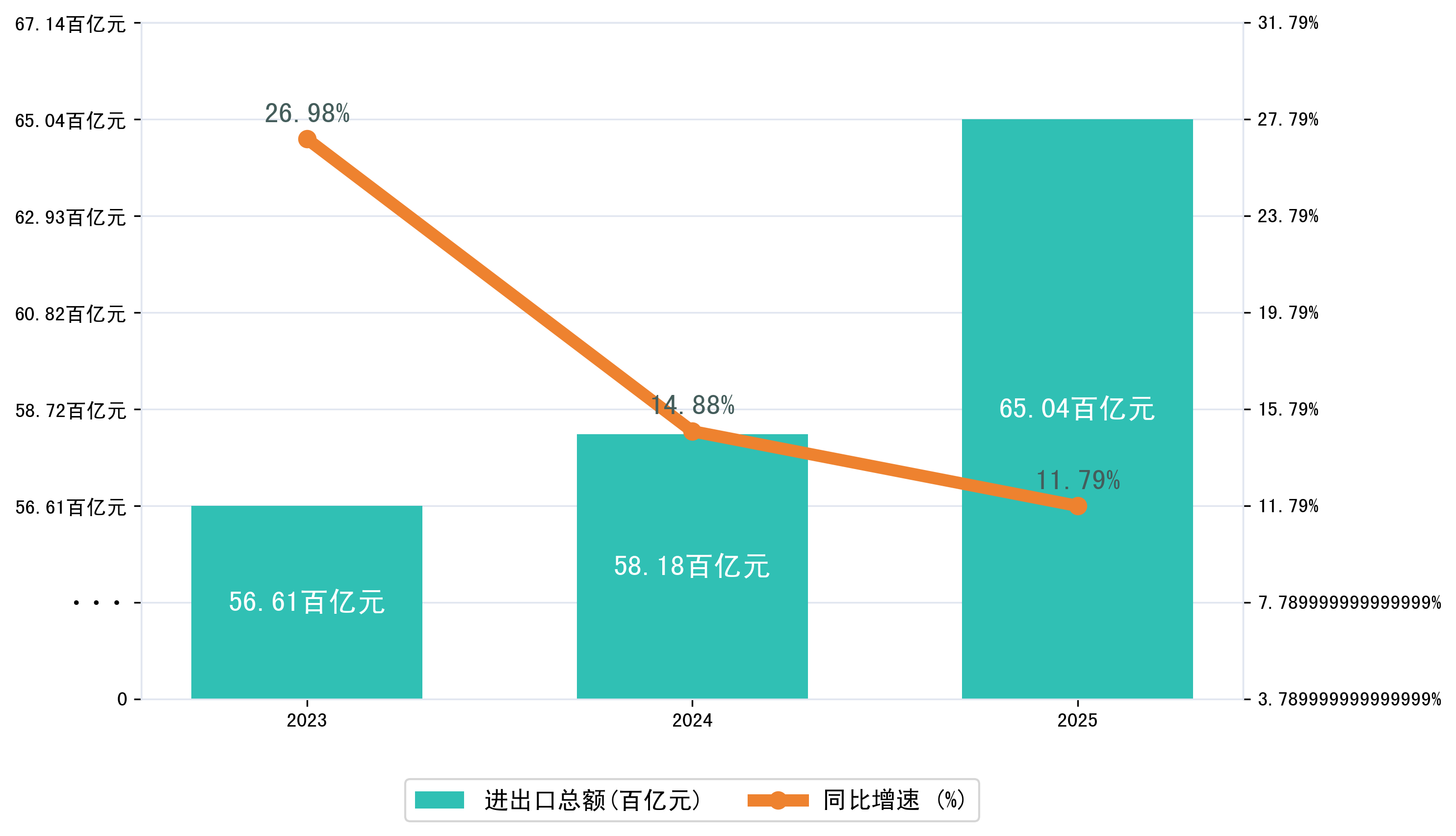 以人民币计,2025年1-10月广西壮族自治区进出口总额为6503,5314.3387万元,相比上年同期增加了685,9183.7939万元,同比增加了12.10%。