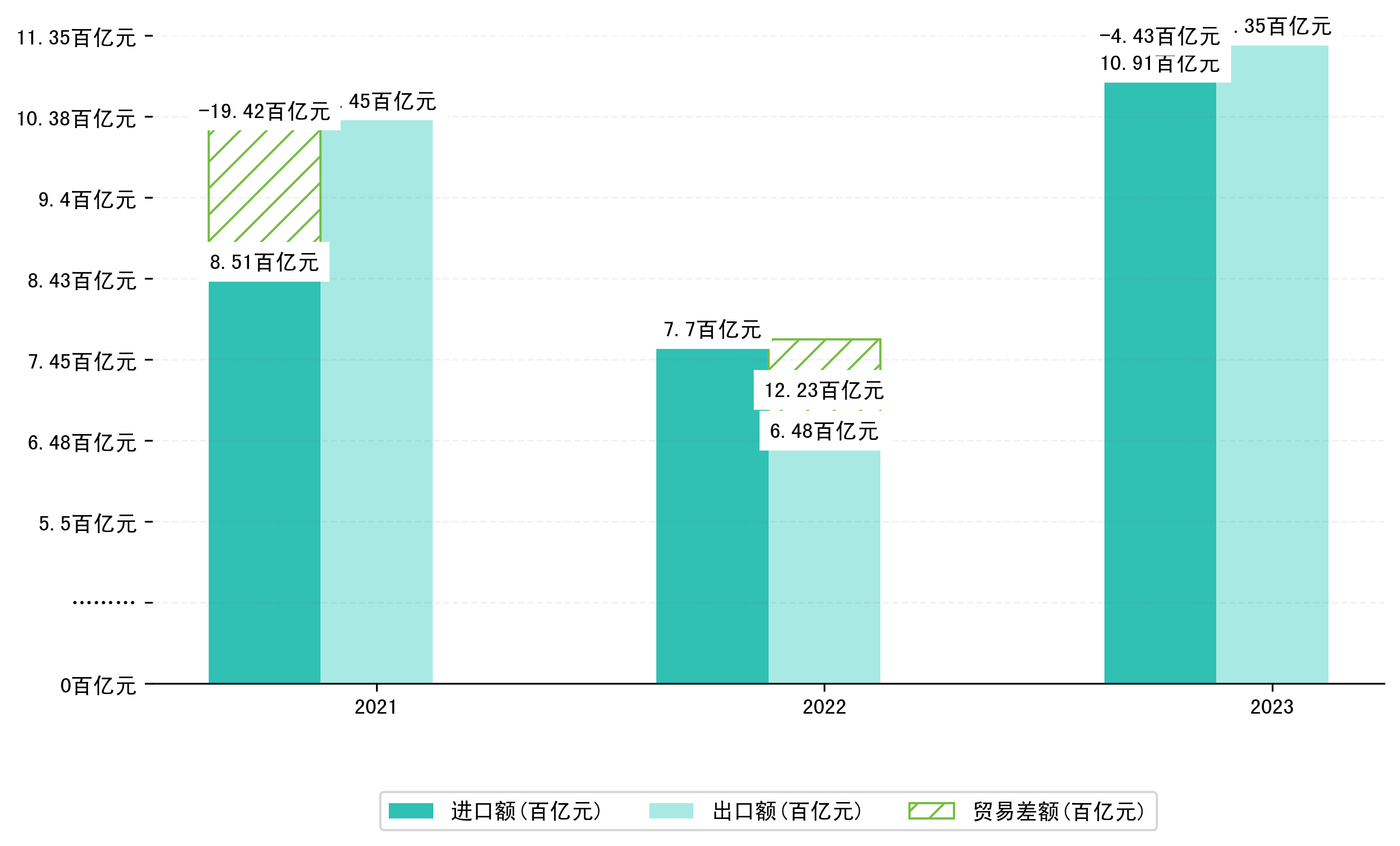 以人民币计,2023年4月广西壮族自治区贸易差额为33,3320,8654万元(贸易顺差),相比上月增加了49,0377,6142万元,即7,3676,4411万美元;相比上年同期增加了115,2731,0515万元,同比增加-140.68%。