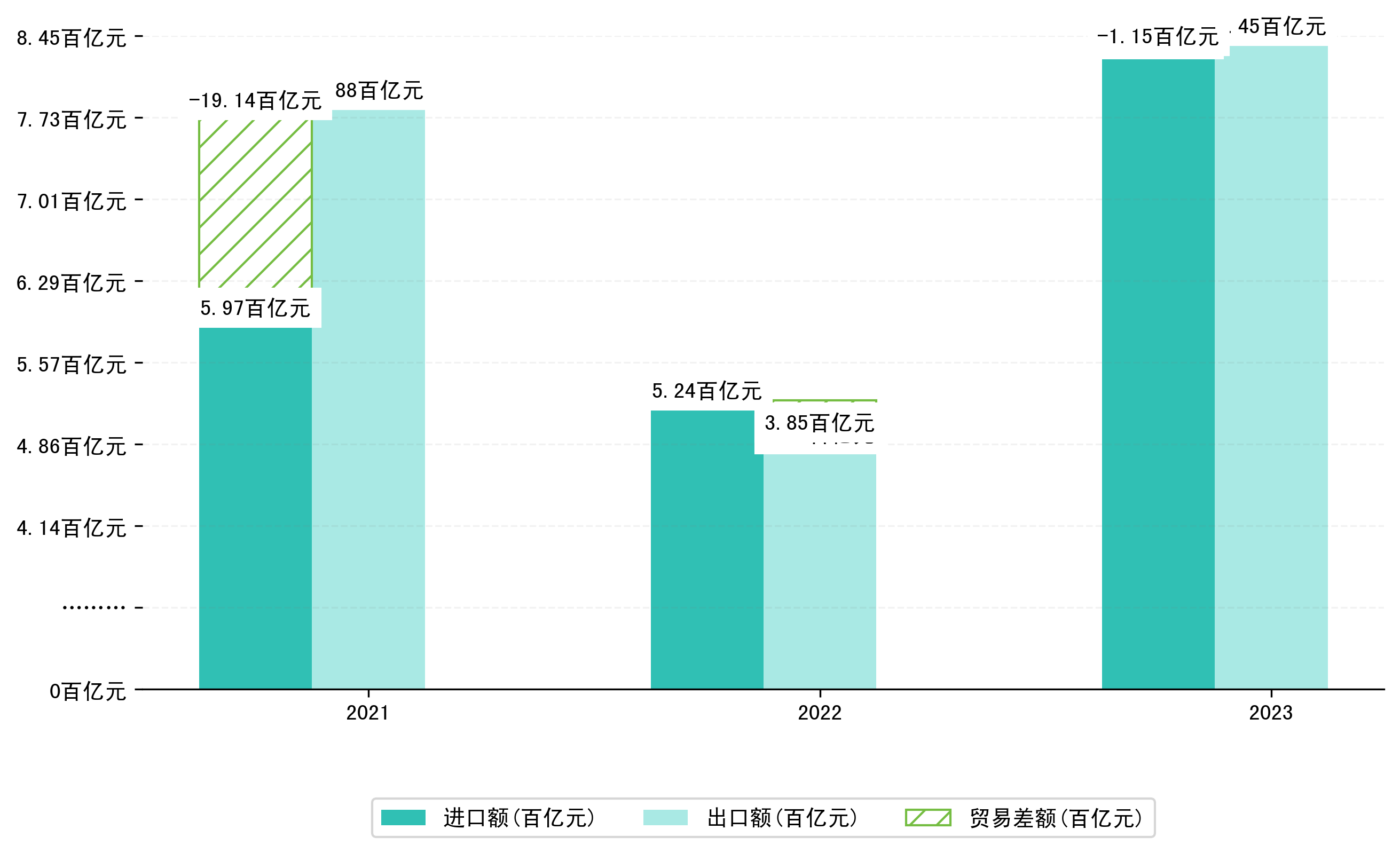(图八:2021-2023年1-3月广西壮族自治区累计贸易差额)