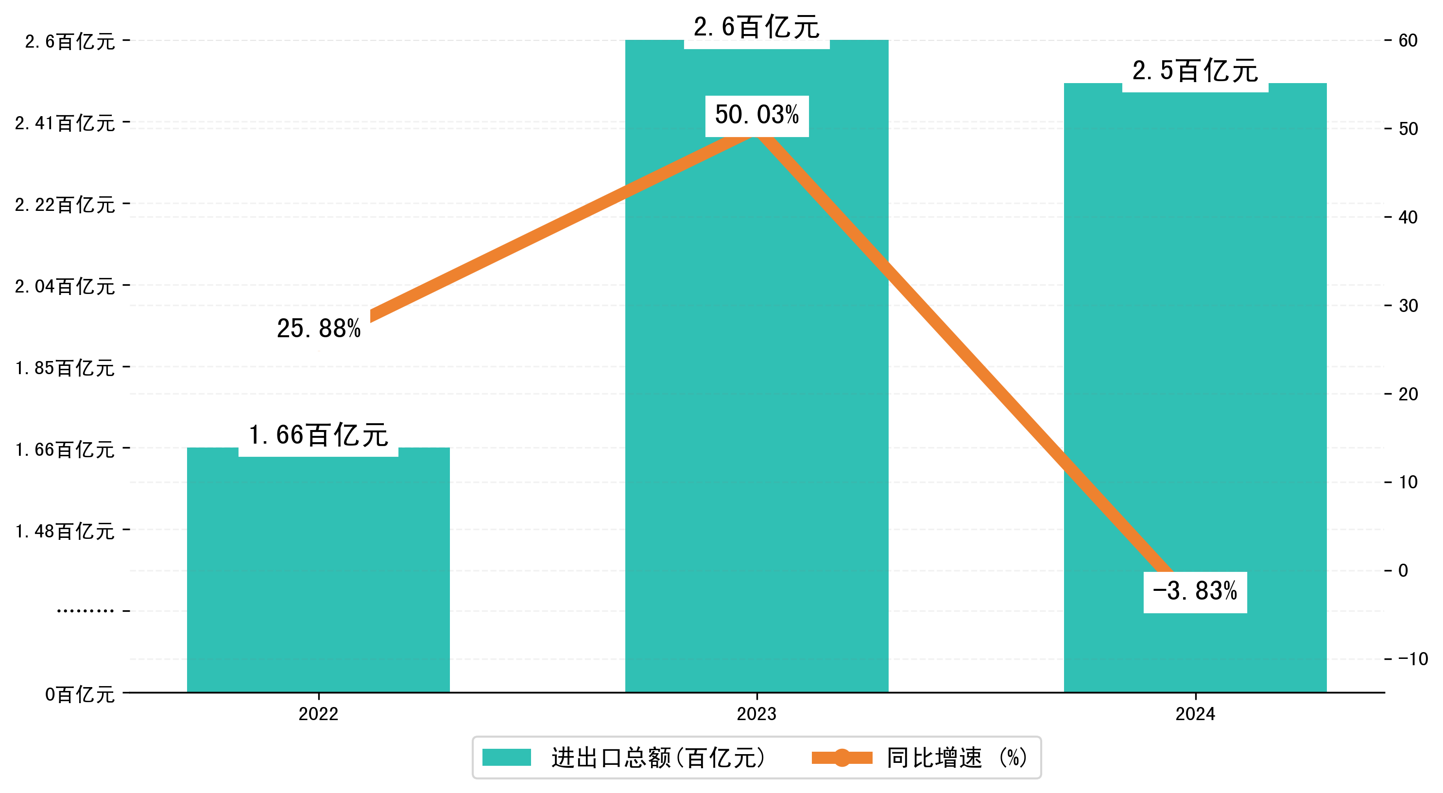 以人民币计,2024年1-4月贵州省进出口总额为249,6587.2385万元,相比上年同期减少了9,9325.4101万元,同比增加了17.30%。