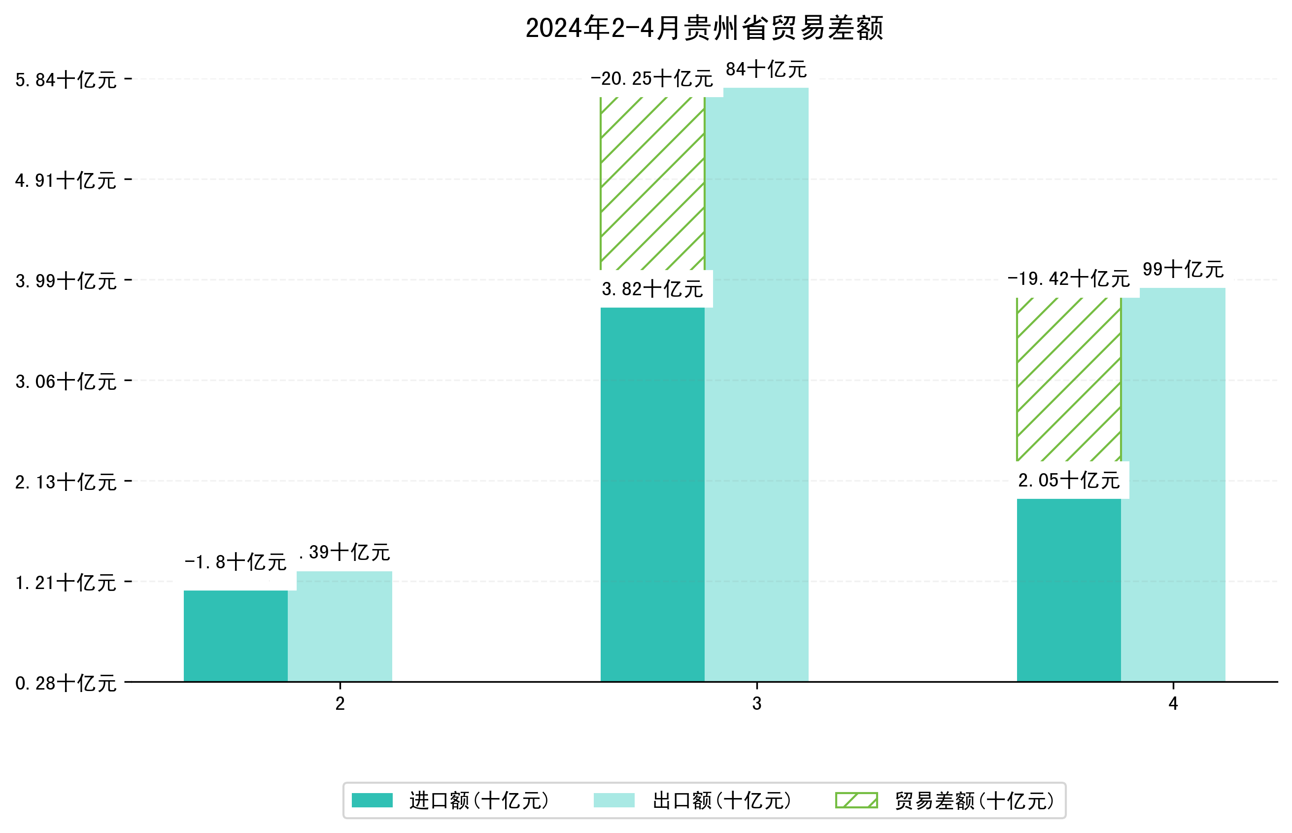 2024年4月贵州省进出口总额及进出口差额统计分析