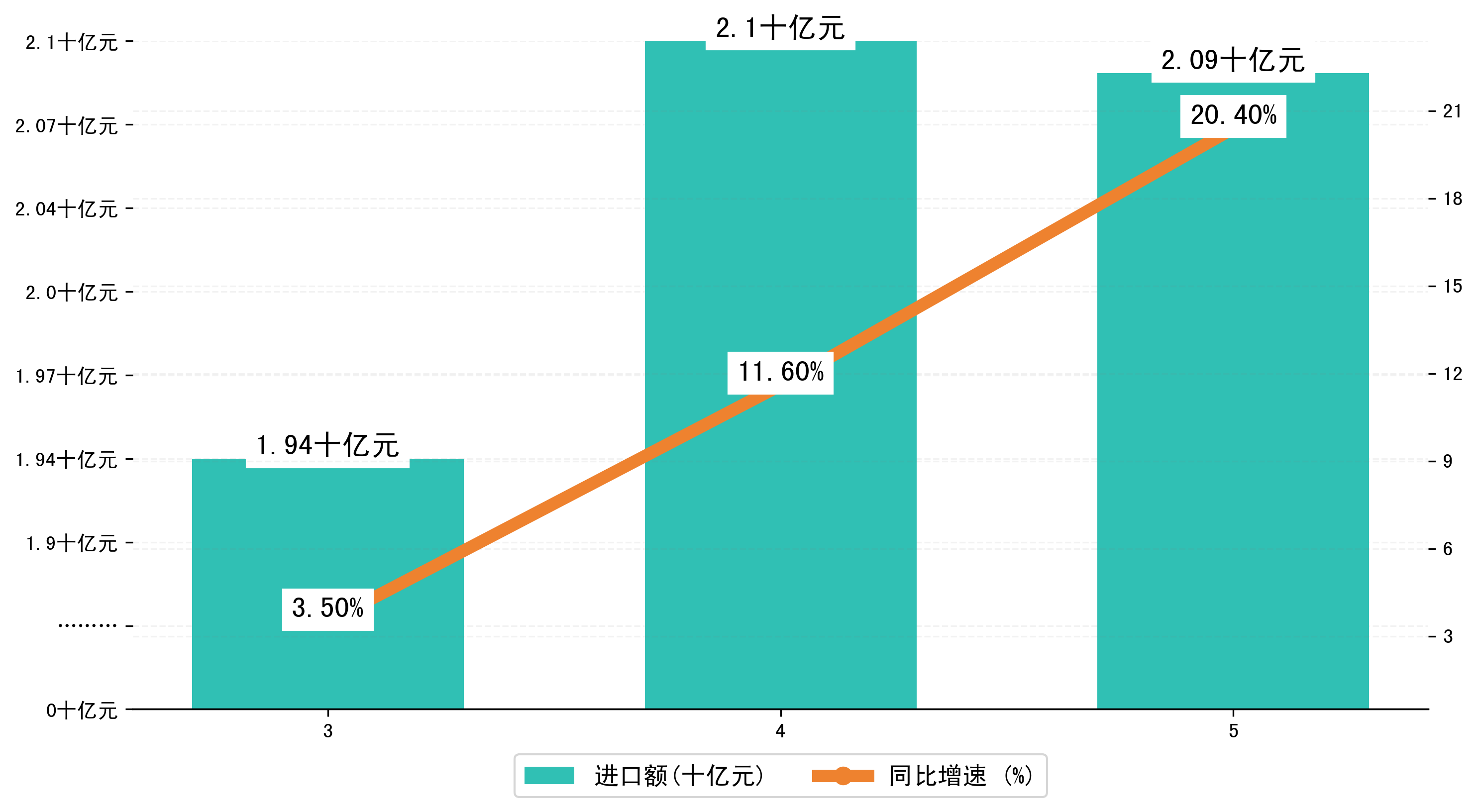 以人民币计,2023年1-5月贵州省进口额为89,6847.095万元,相比上年同期增加了15,9211.5773万元,同比增加了20.40%。