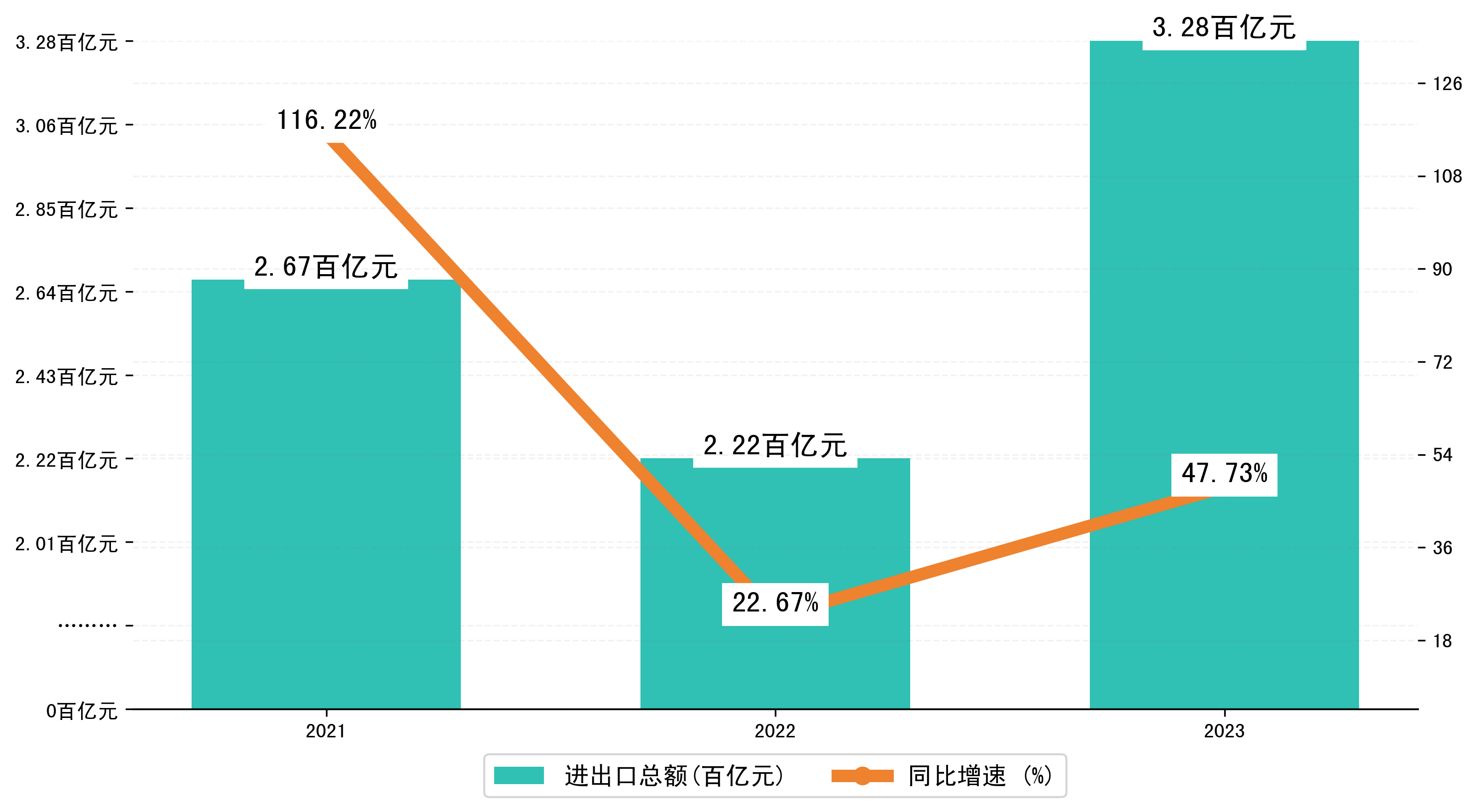以人民币计,2023年1-5月贵州省进出口总额为327,6390.2746万元,相比上年同期增加了105,8574.5007万元,同比增加了47.20%。