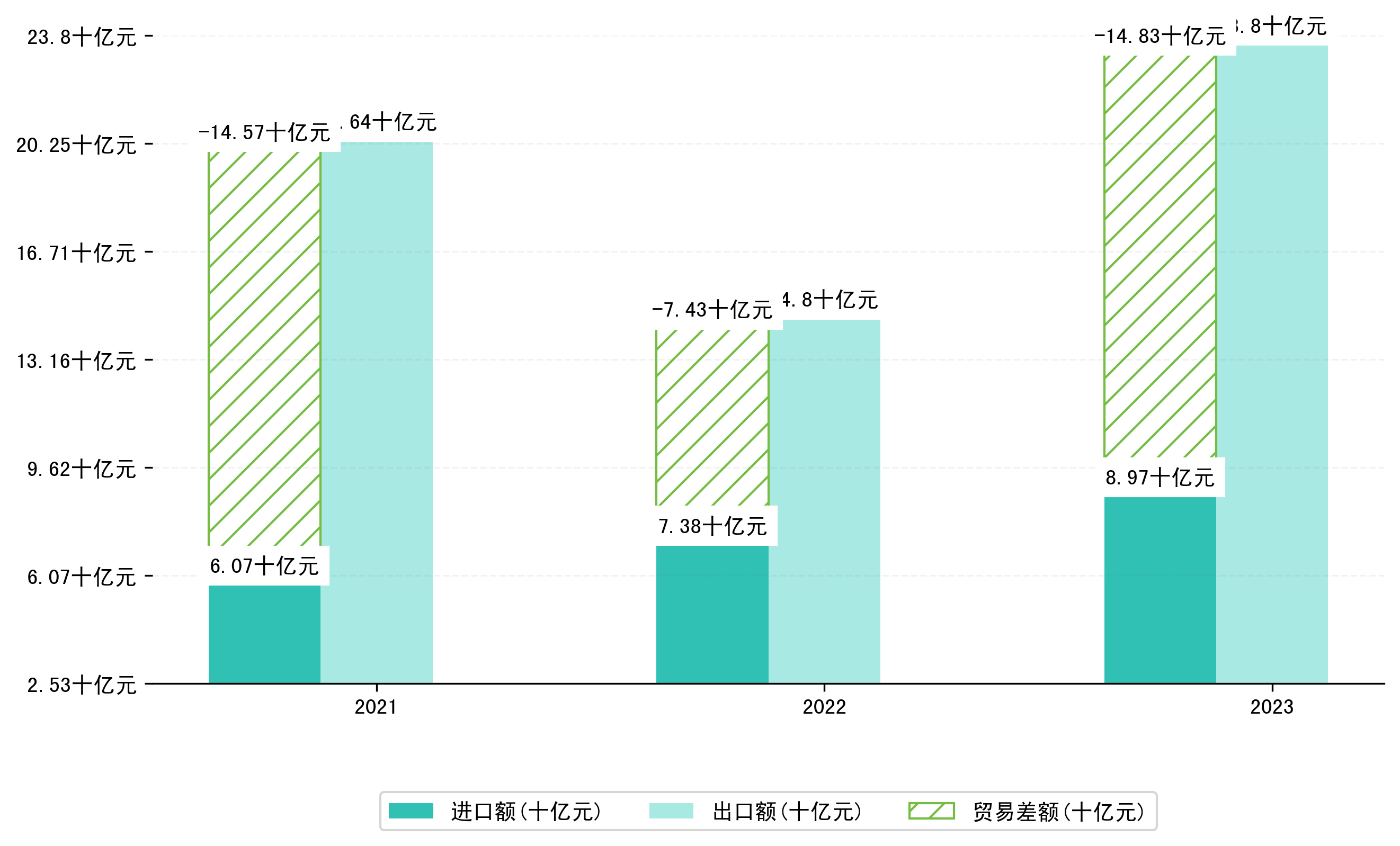以美元计,2023年1-5月贵州省贸易差额为21,5926,7904万美元(贸易顺差),相比上年同期增加了9,9580,6602万美元,同比增加85.59%。