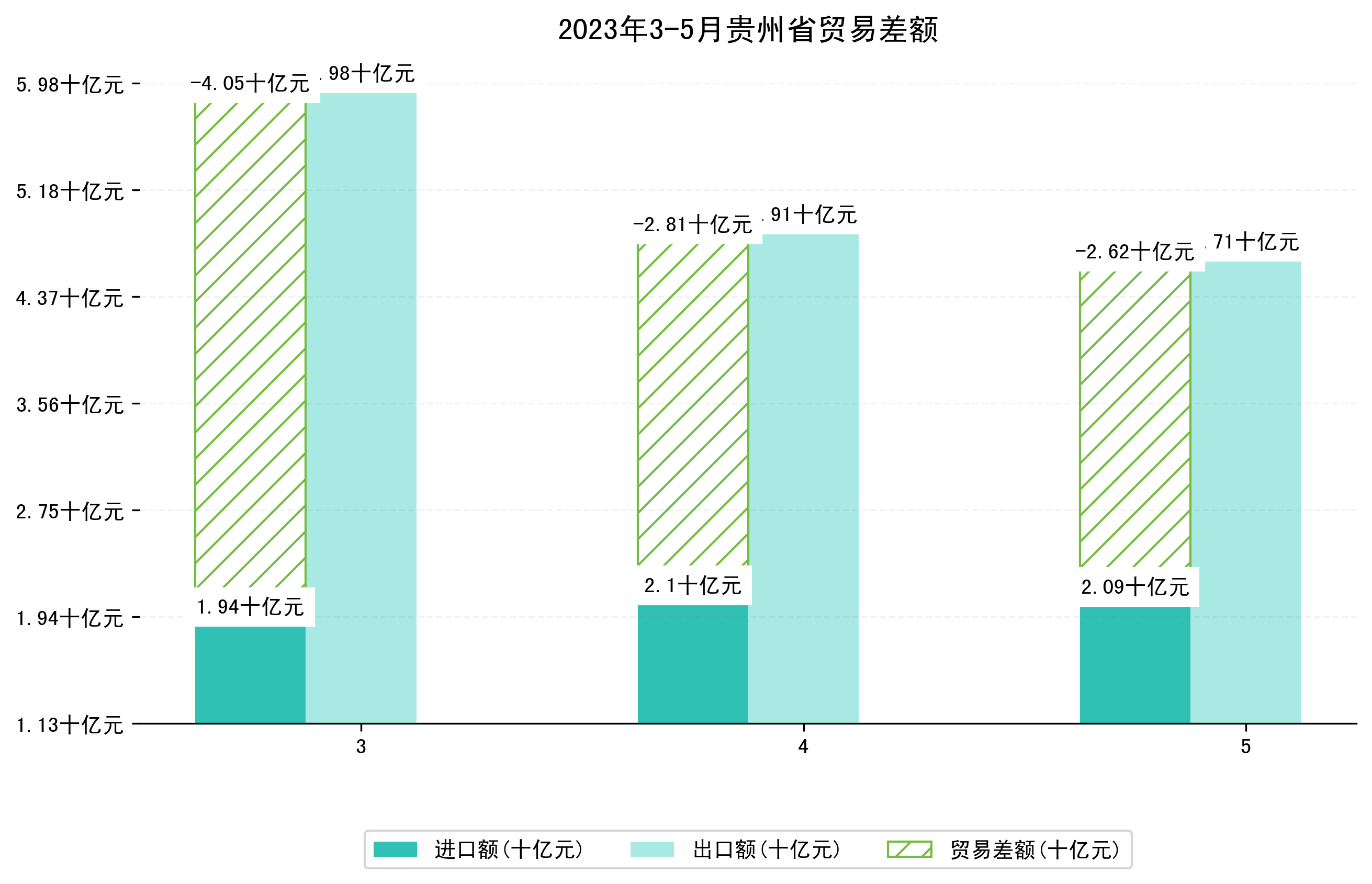 2023年5月贵州省进出口总额及进出口差额统计分析