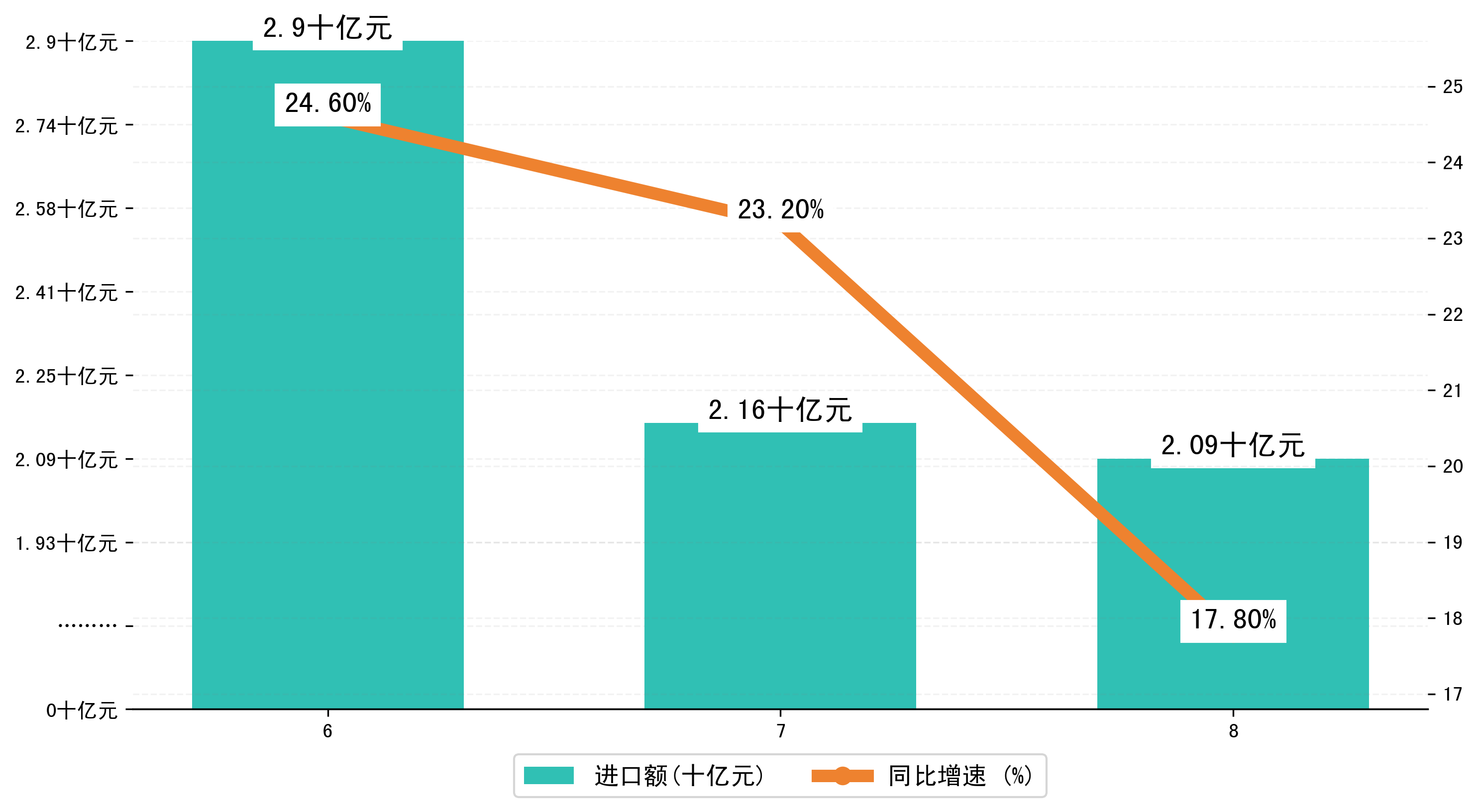 以人民币计,2024年1-8月贵州省进口额为175,0966.113万元,相比上年同期增加了23,8373.4739万元,同比增加了17.80%。