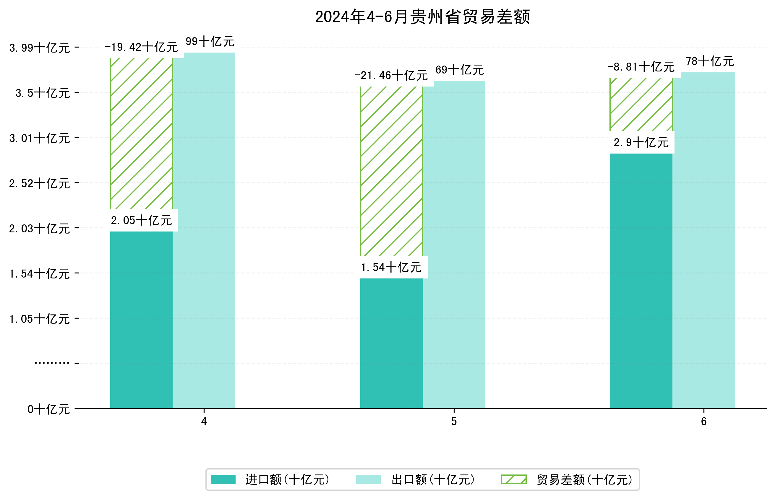 2024年6月贵州省进出口总额及进出口差额统计分析
