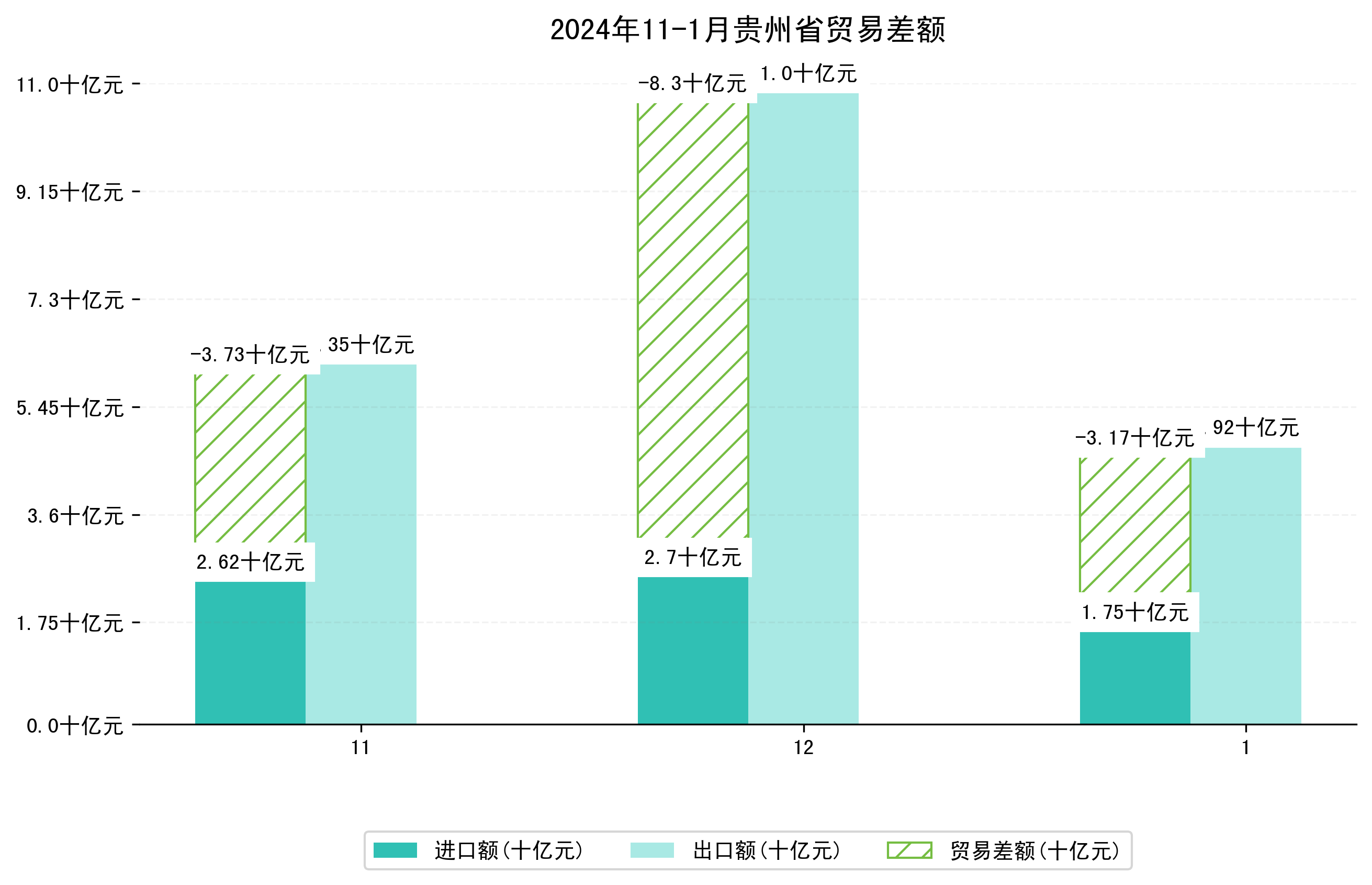 (图四:2024年11-1月贵州省贸易差额)
