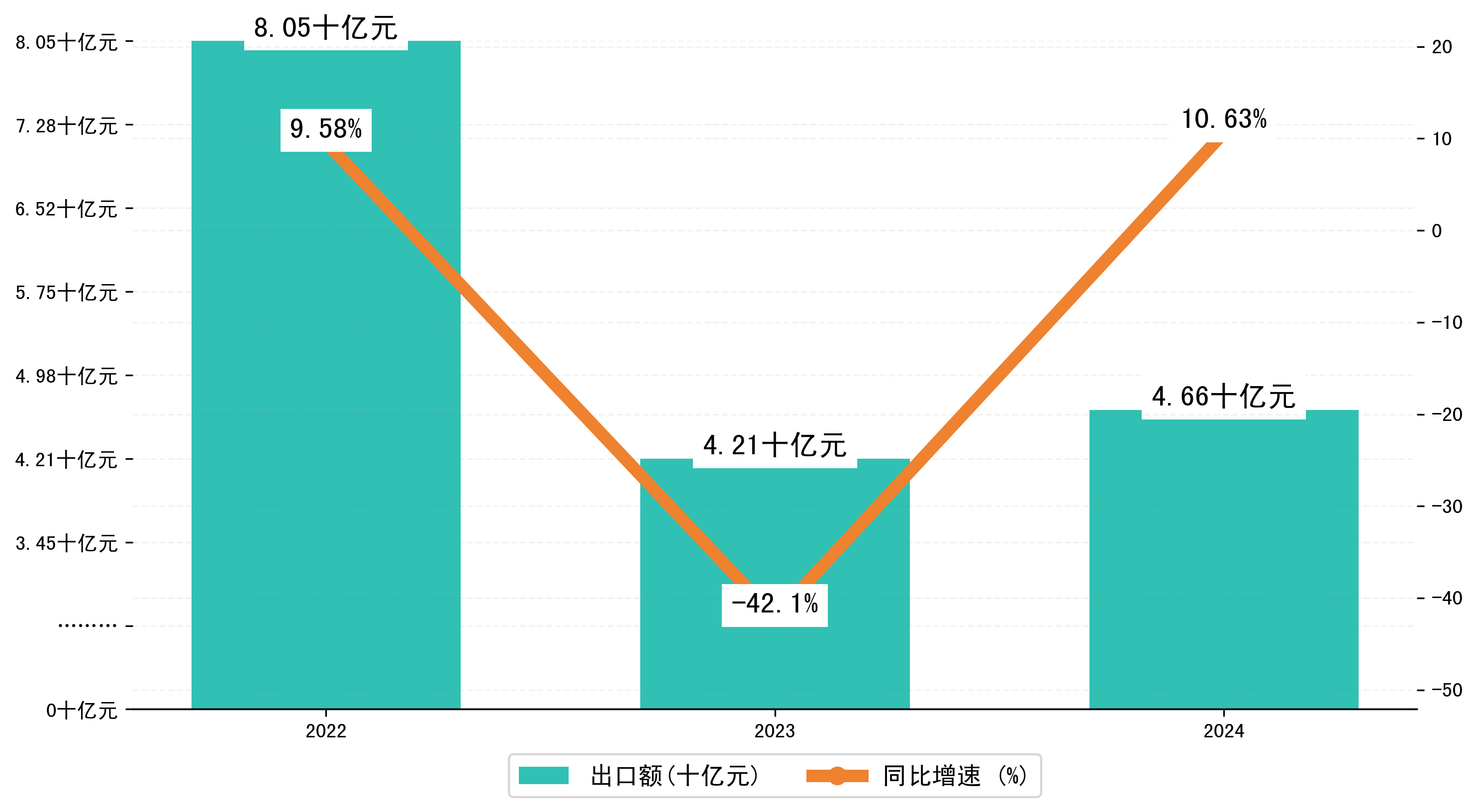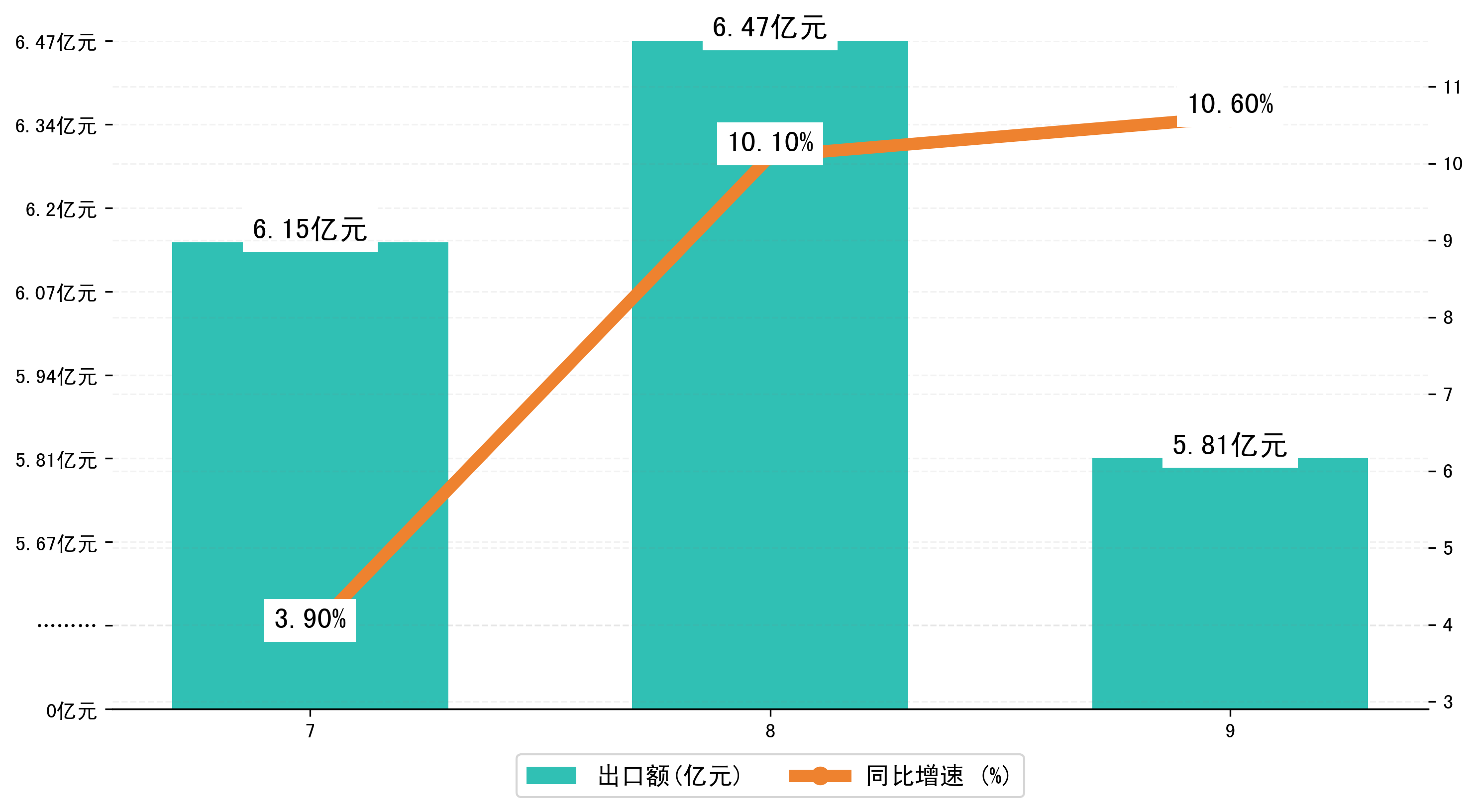 以人民币计,2024年1-9月乐山市出口额为46,6159.6931万元,相比上年同期增加了4,4777.8234万元,同比增加了10.60%。
