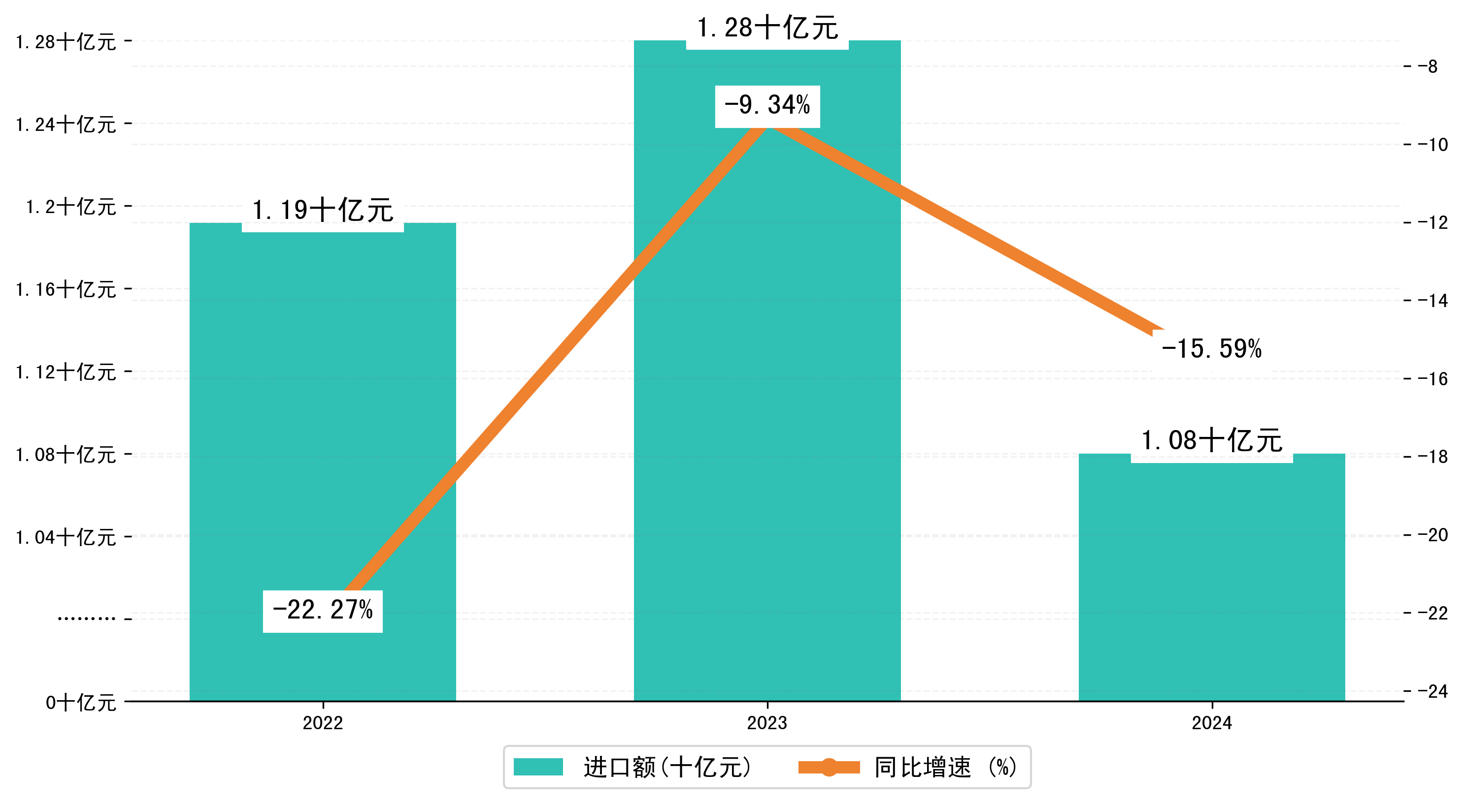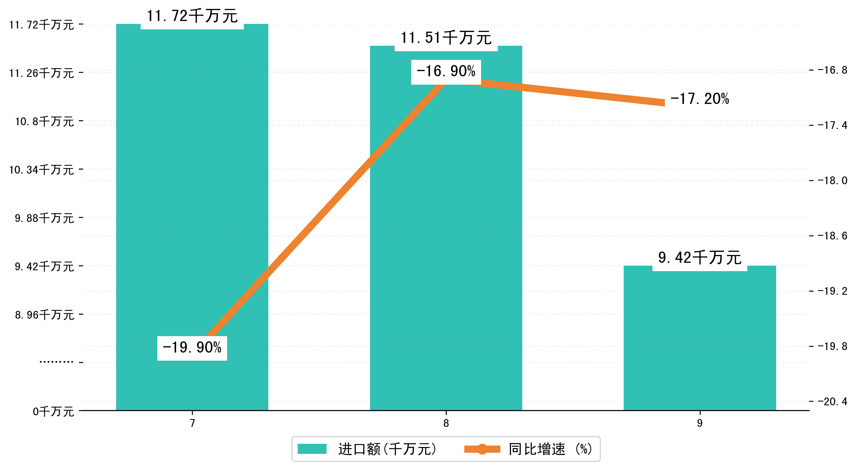 以人民币计,2024年1-9月乐山市进口额为10,7982.9958万元,相比上年同期减少了1,9944.7772万元,同比减少了-17.20%。