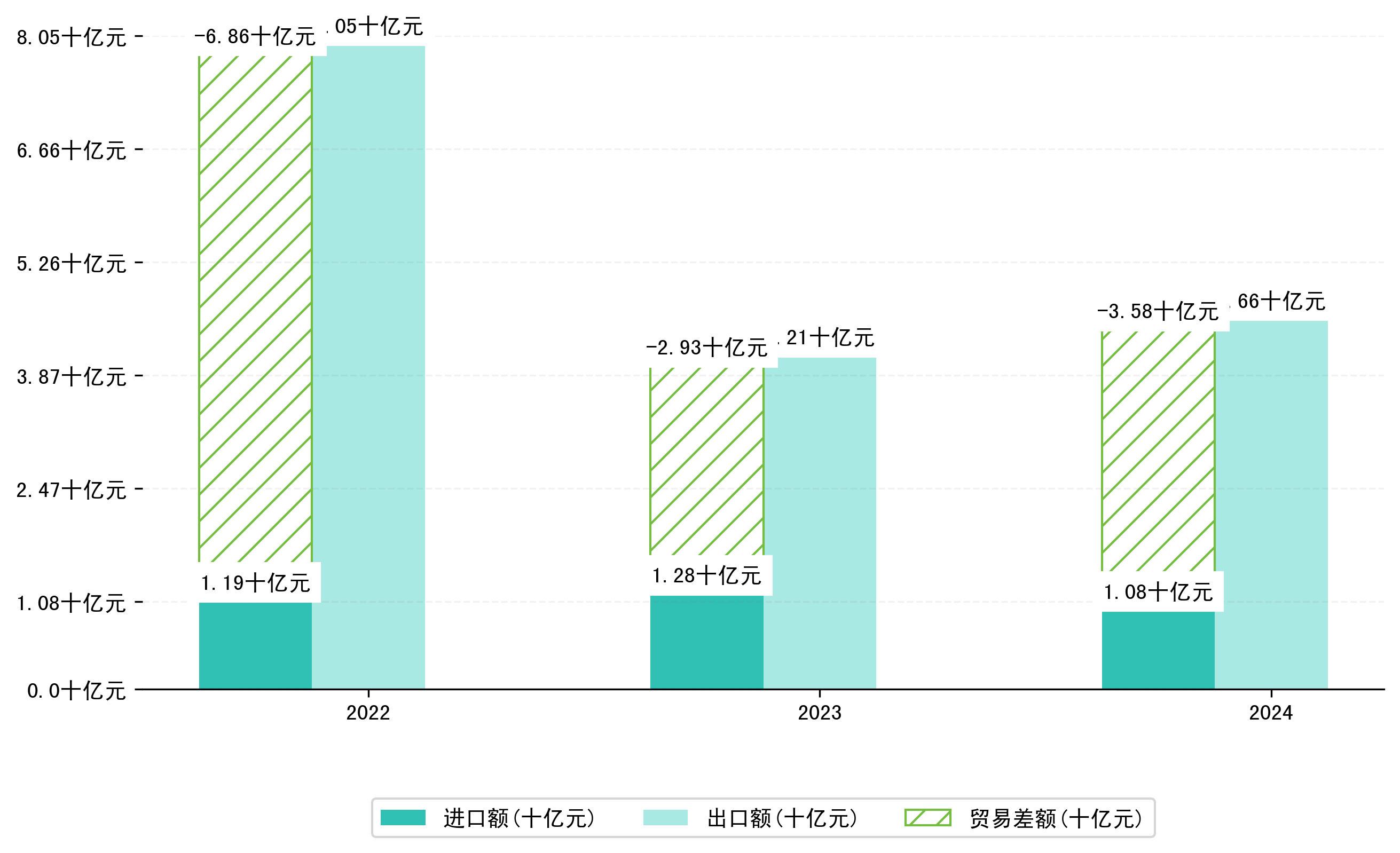 以人民币计,2024年1-9月乐山市贸易差额为35,8176,6973万元(贸易顺差),相比上年同期增加了6,4722,6006万元,同比增加22.06%。