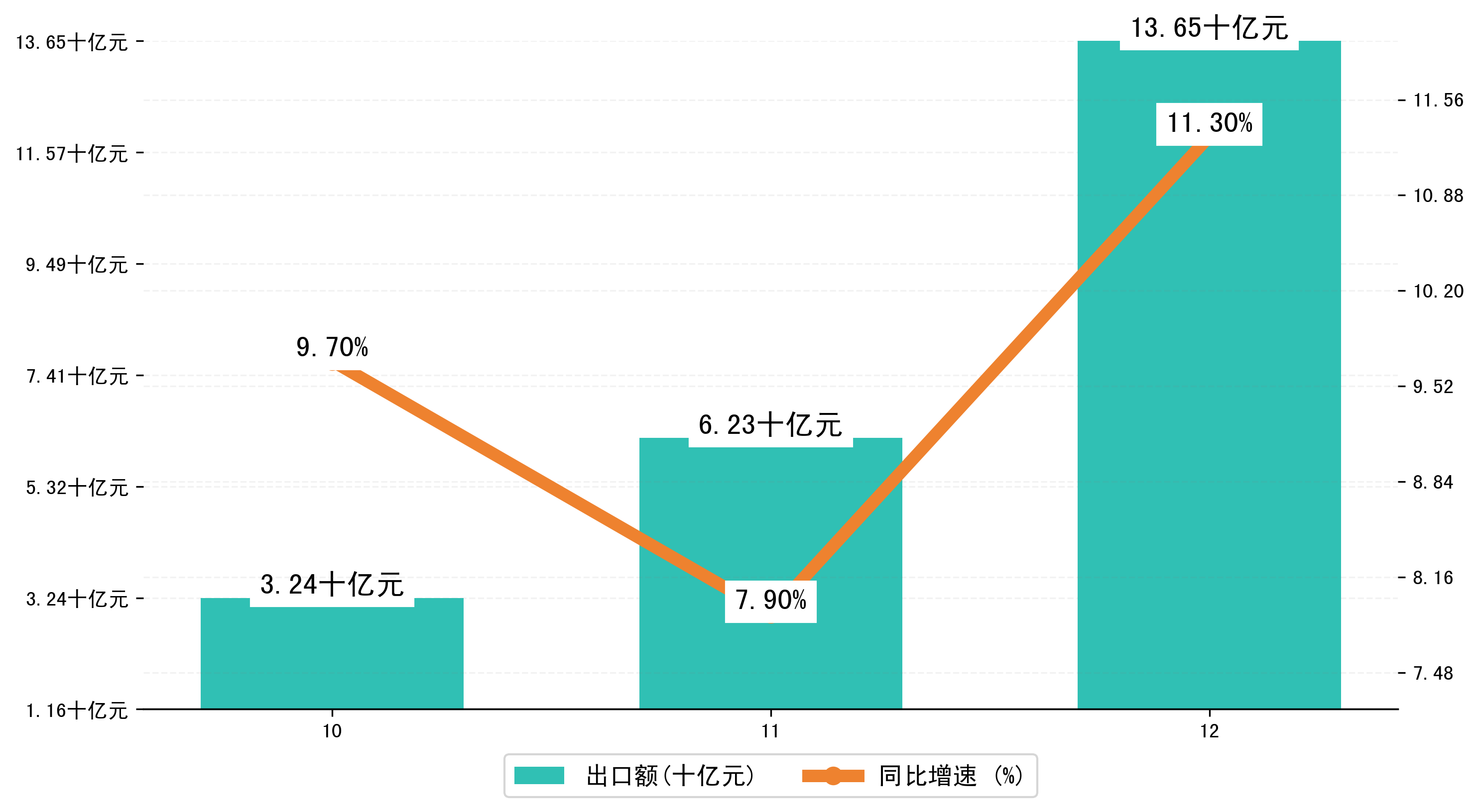 以美元计,2024年12月贵州省贸易差额为13,0569,3271万美元(贸易顺差),相比上月增加了8,3313,7605万美元;相比上年同期增加了1,4817,2041万美元,同比增加12.8%。
