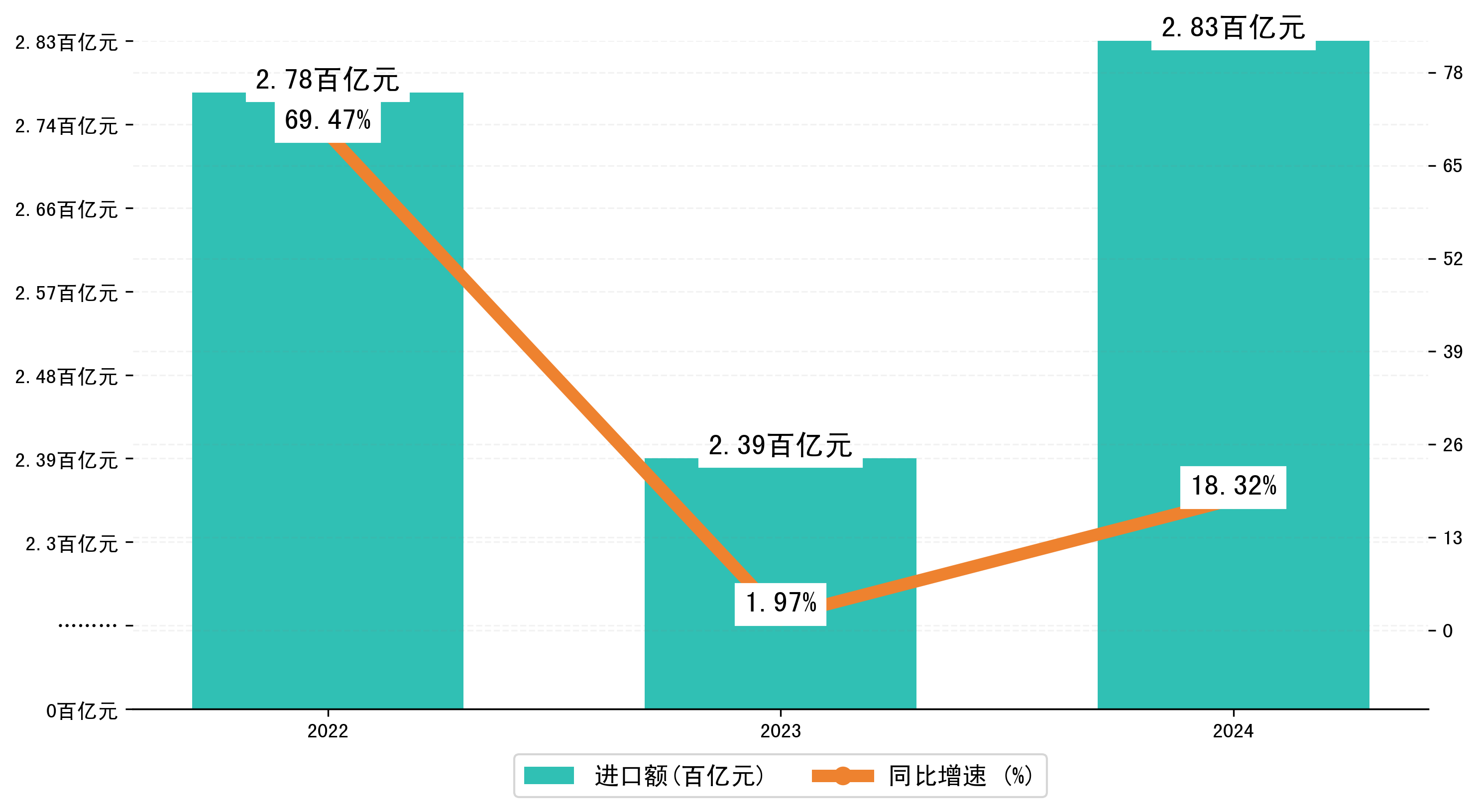 以人民币计,2024年1-12月贵州省进口额为283,1090.3559万元,相比上年同期增加了43,8446.9196万元,同比增加了18.50%。