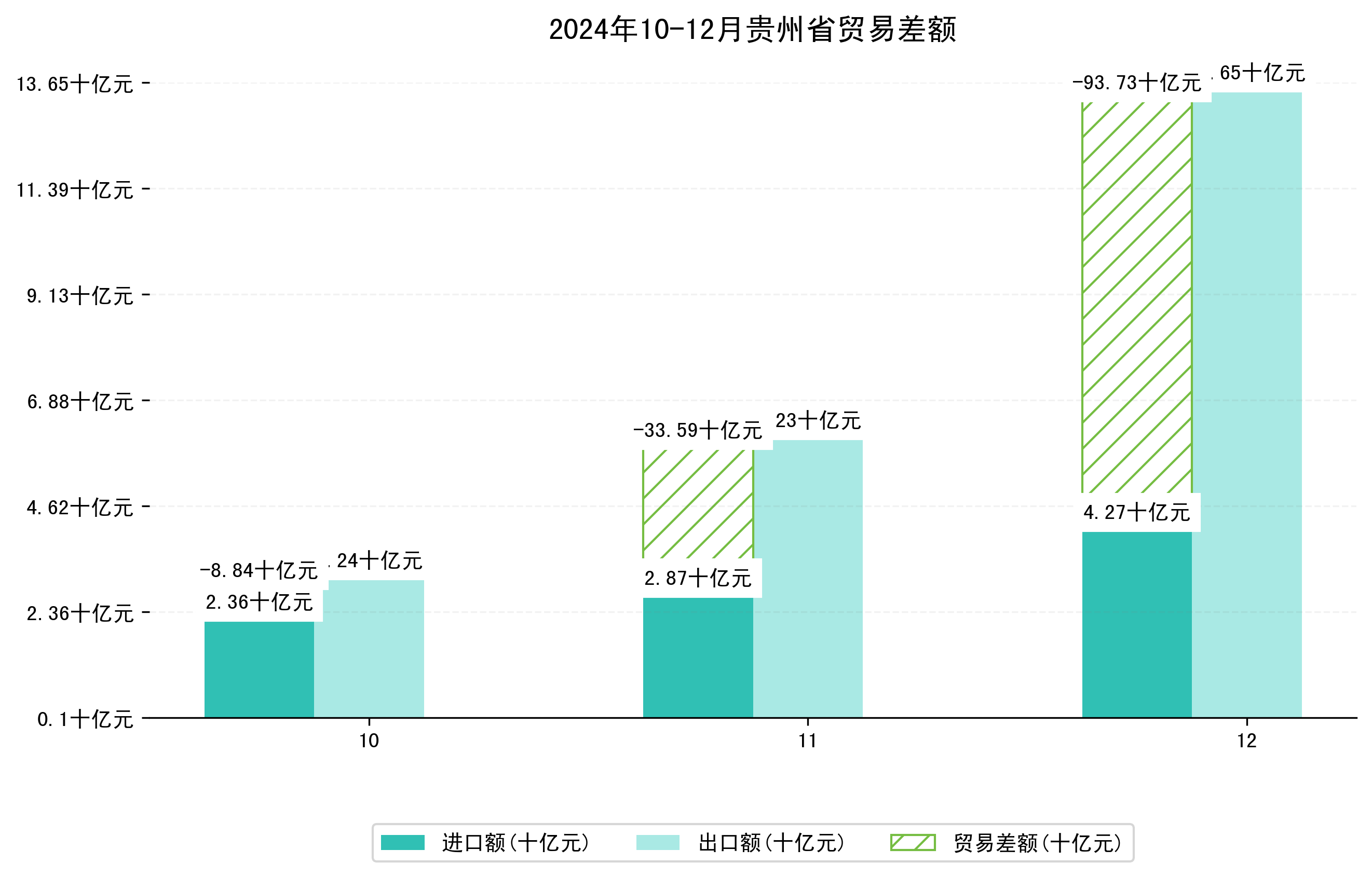 2024年12月贵州省进出口总额及进出口差额统计分析