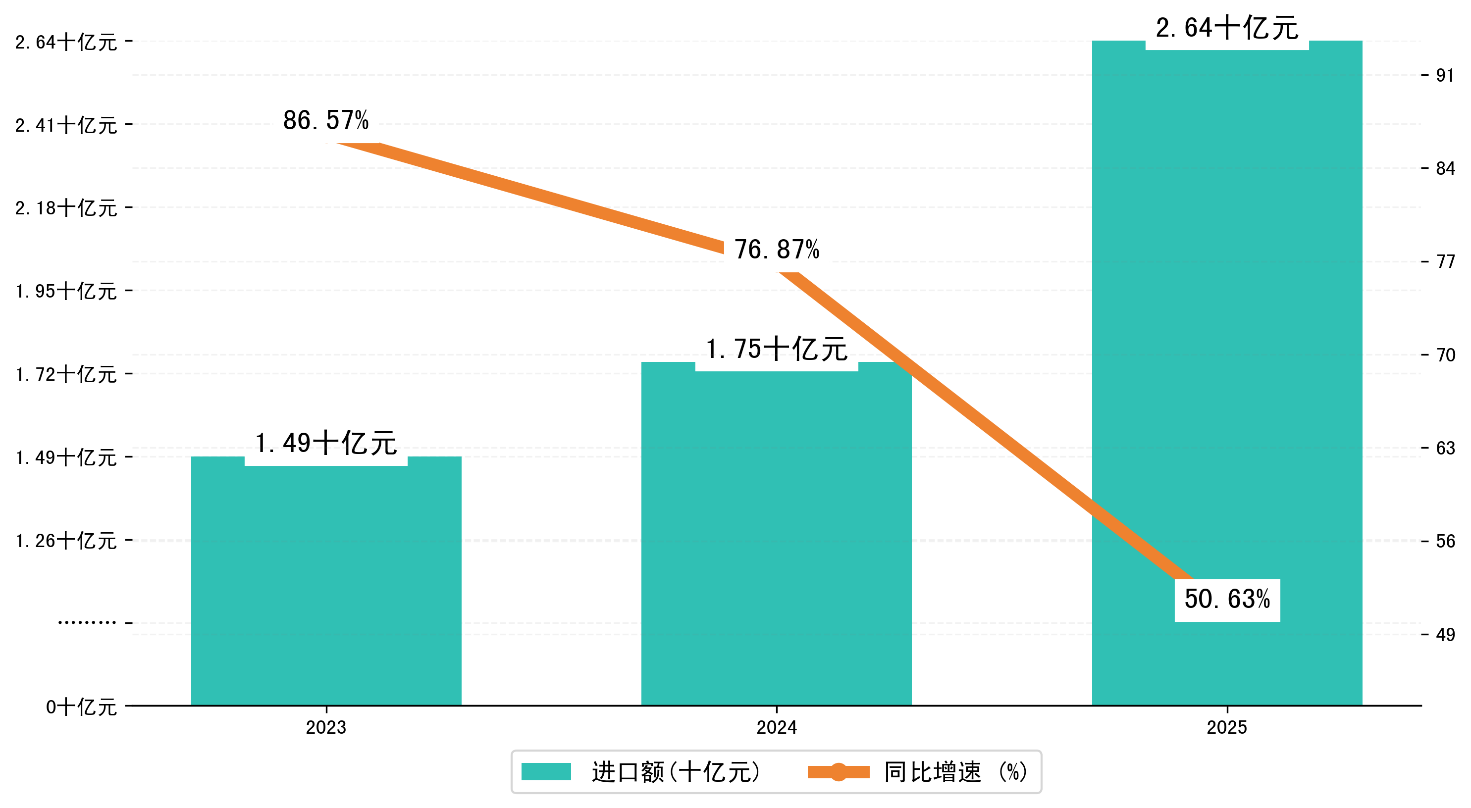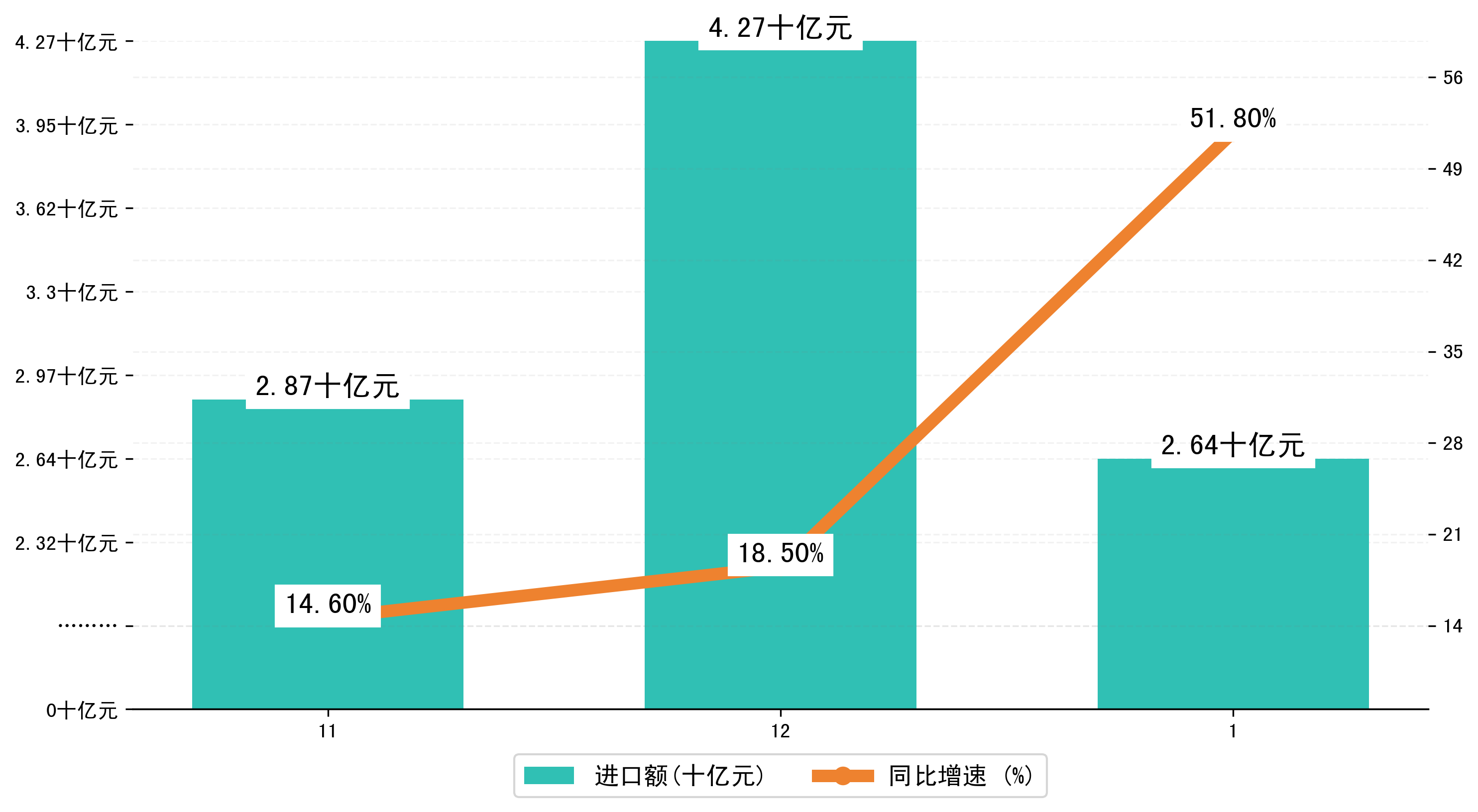以人民币计,2025年1月贵州省进口额为26,4218.6115万元,相比上月减少了16,3253.8119万元;相比上年同期增加了8,8808.9926万元,同比增加了51.80%。