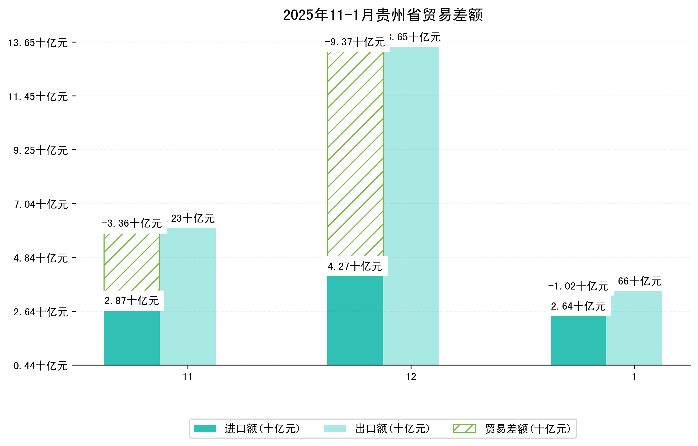 2025年1月贵州省进出口总额及进出口差额统计分析