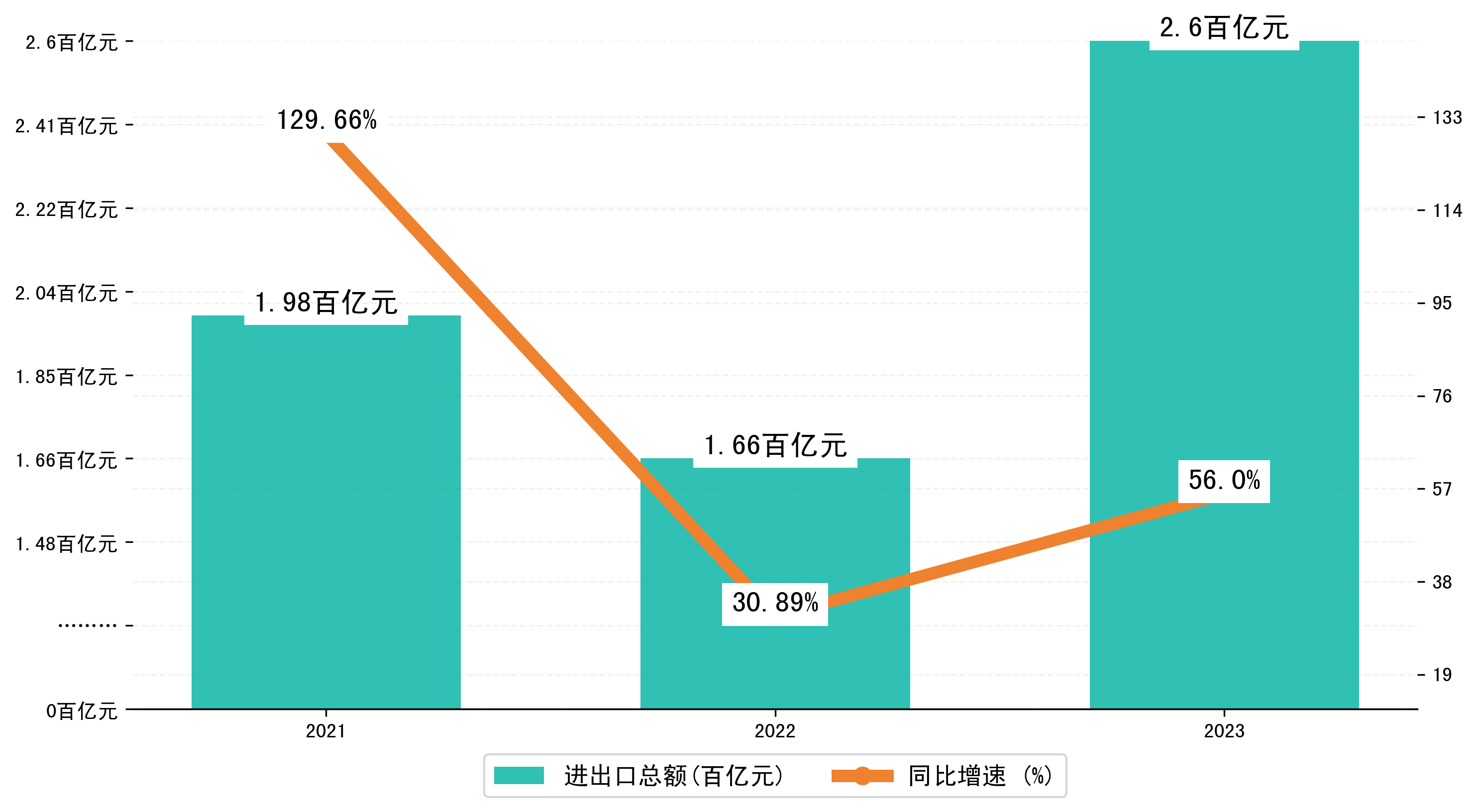 以人民币计,2023年1-4月贵州省进出口总额为259,5912.6486万元,相比上年同期增加了93,1865.4314万元,同比增加了54.50%。