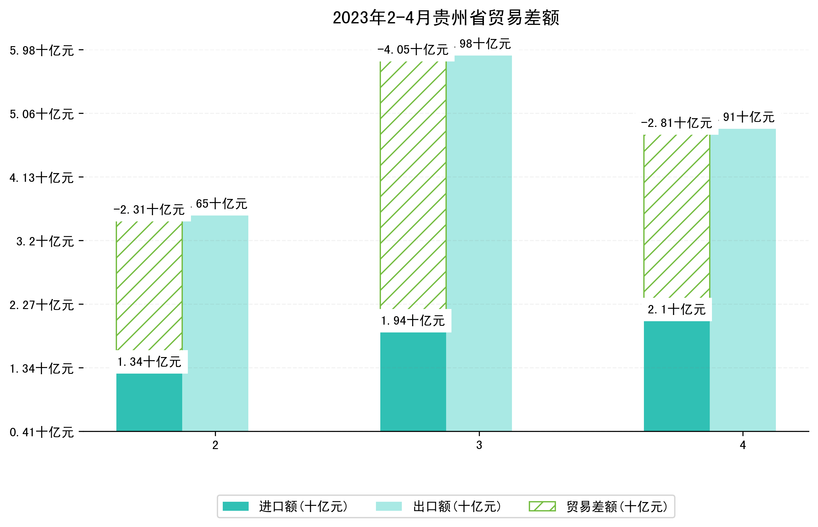 2023年4月贵州省进出口总额及进出口差额统计分析