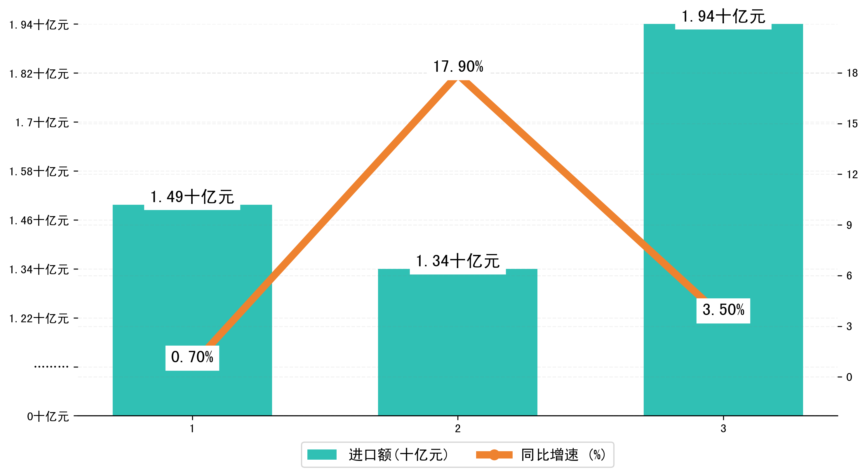 以人民币计,2023年1-3月贵州省进口额为47,6681.2457万元,相比上年同期增加了3,0505.7415万元,同比增加了3.50%。