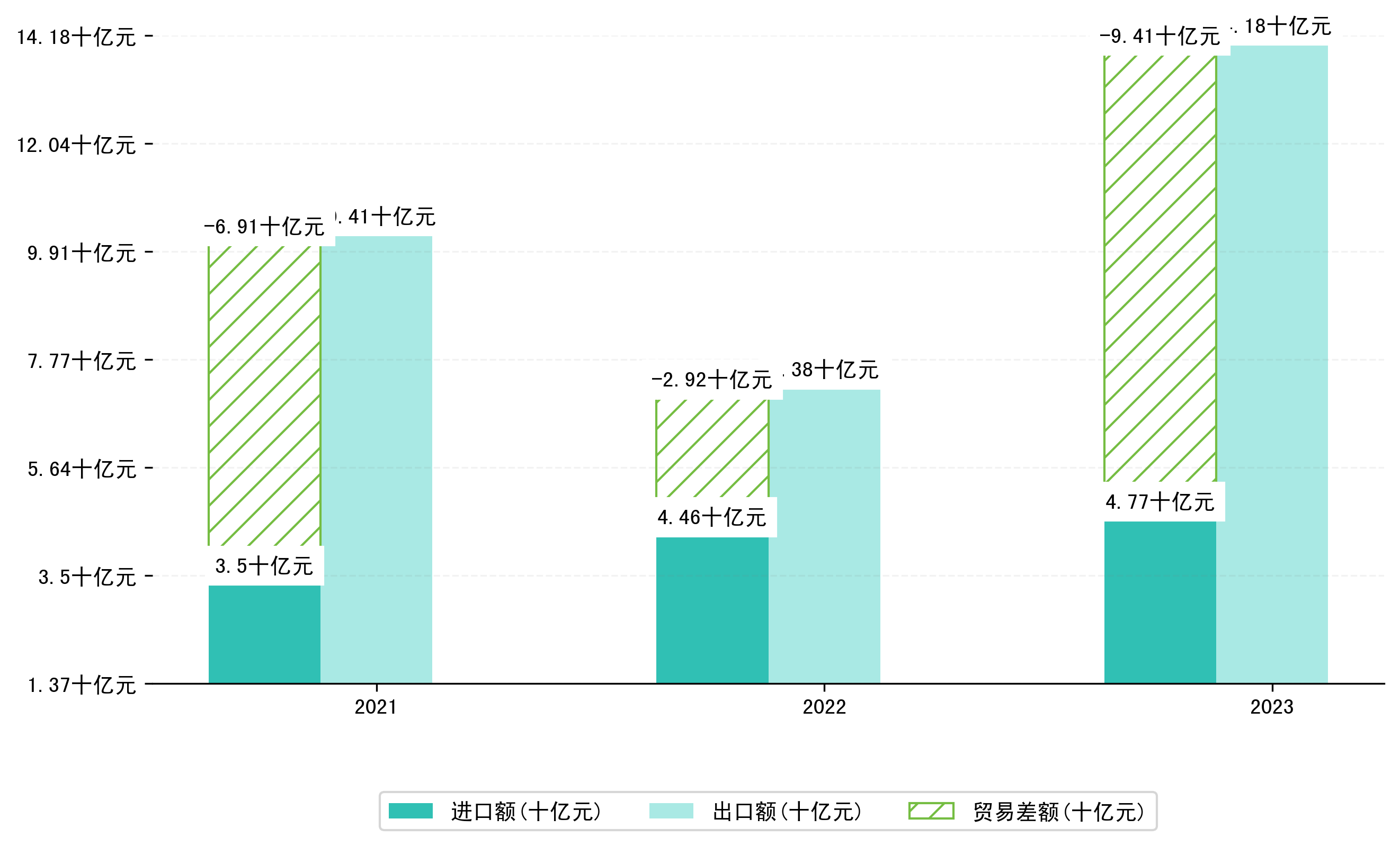 以美元计,2023年1-3月贵州省贸易差额为13,7056,7156万美元(贸易顺差),相比上年同期增加了9,1286,0550万美元,同比增加199.44%。