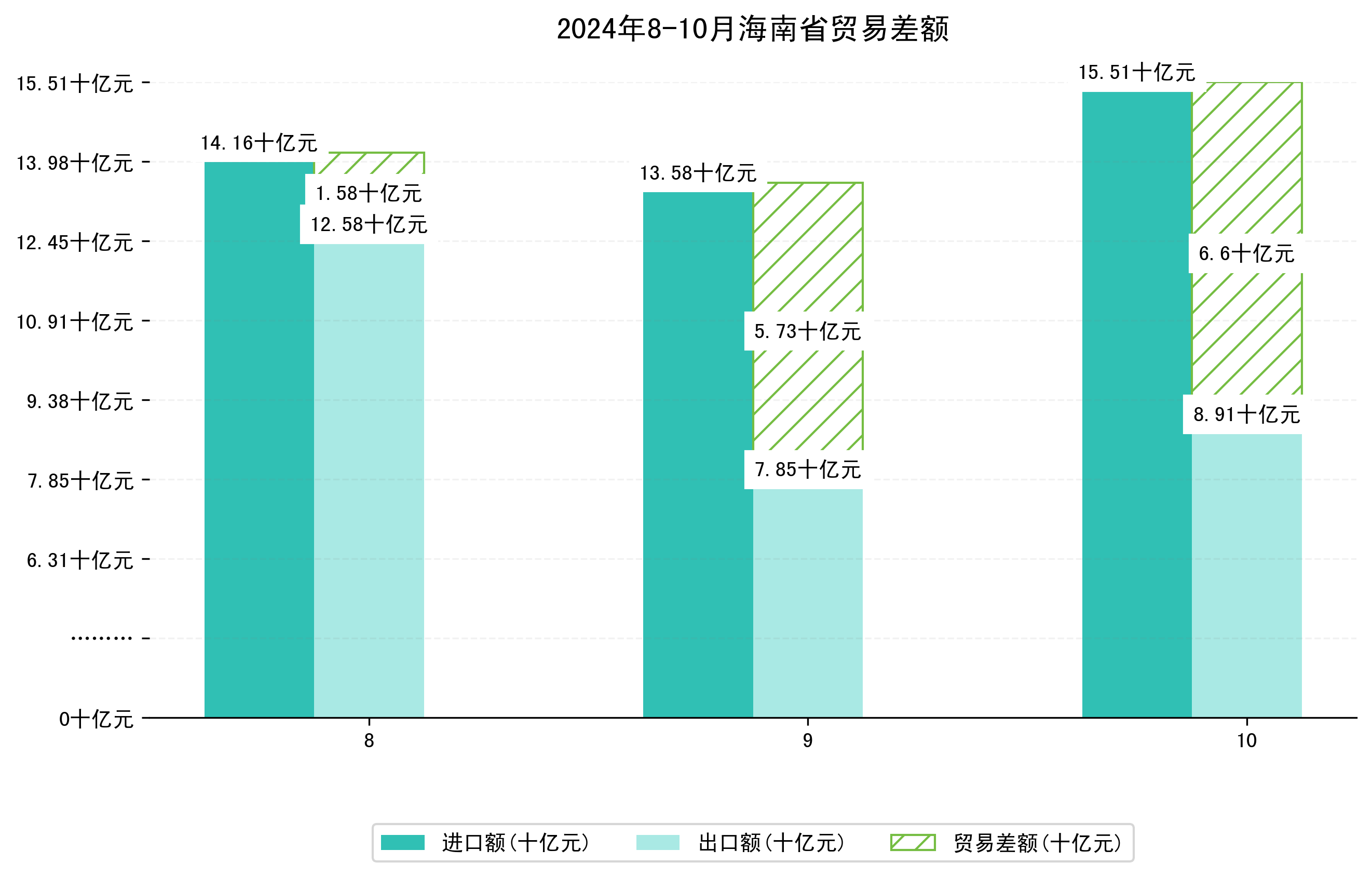 (图一:2024年8-10月海南省进出口总额)