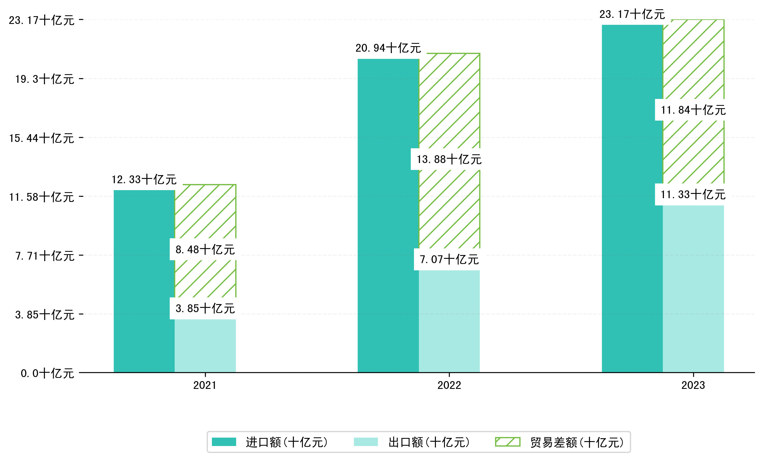 以人民币计,2023年1-2月海南省贸易差额为118,4202,0174万元(贸易逆差),相比上年同期增加了20,3488,3951万元,同比增加-14.66%。
