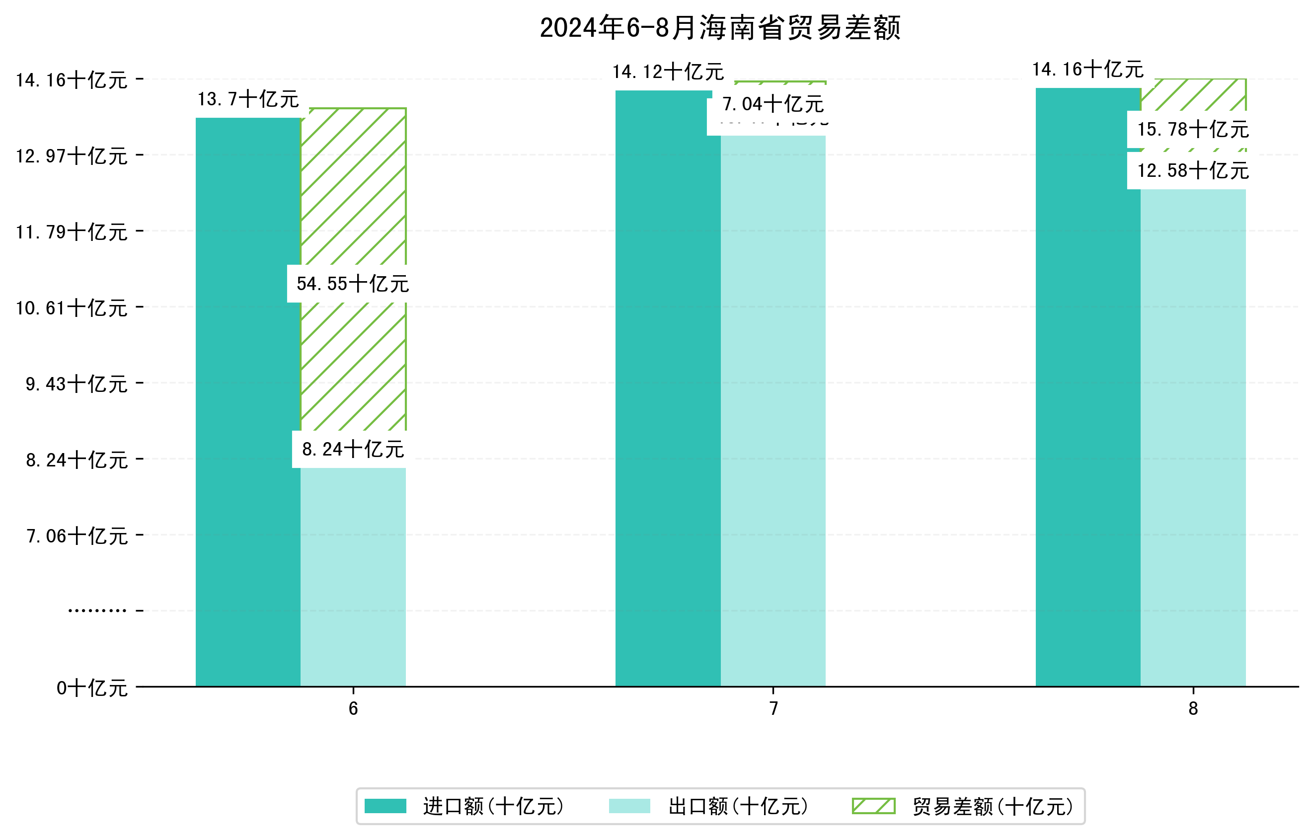 (图一:2024年6-8月海南省进出口总额)