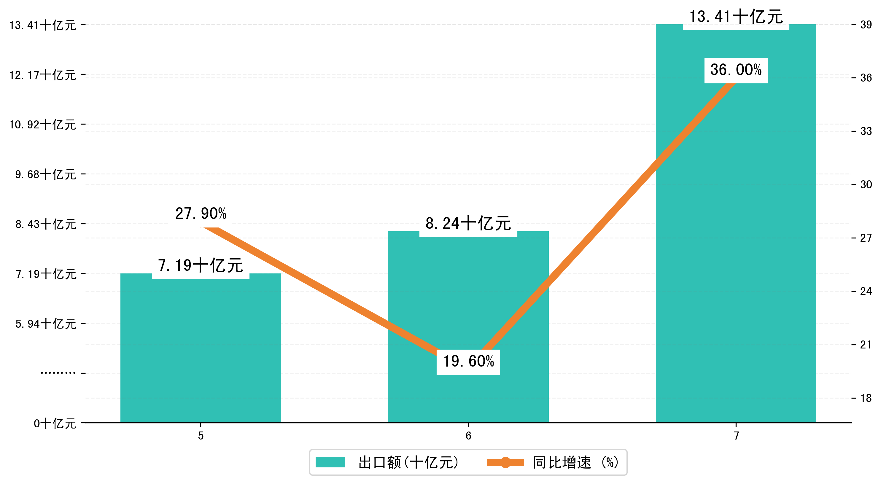 以人民币计,2024年1-7月海南省出口额为589,3293.3698万元,相比上年同期增加了154,5496.1658万元,同比增加了36.00%。