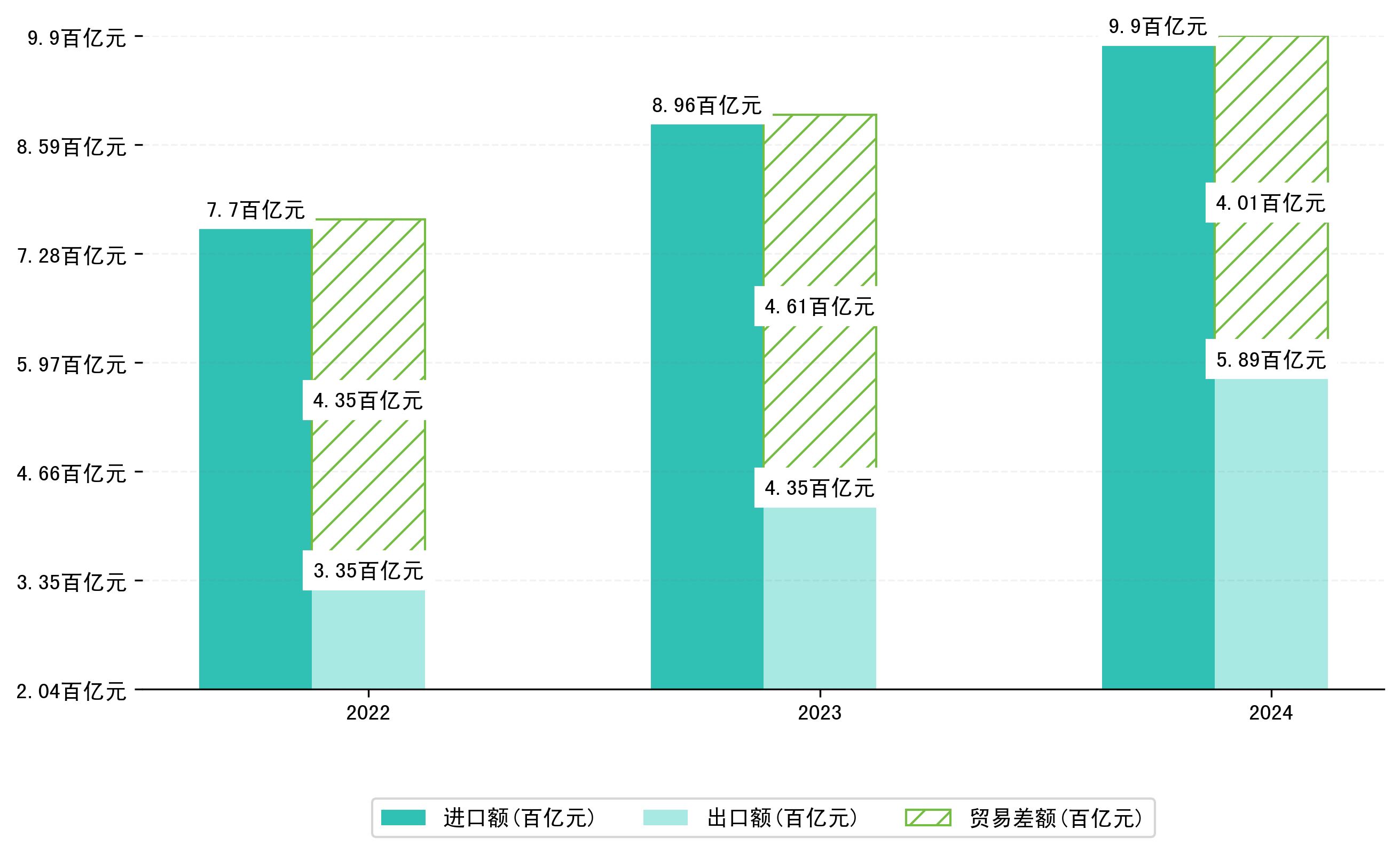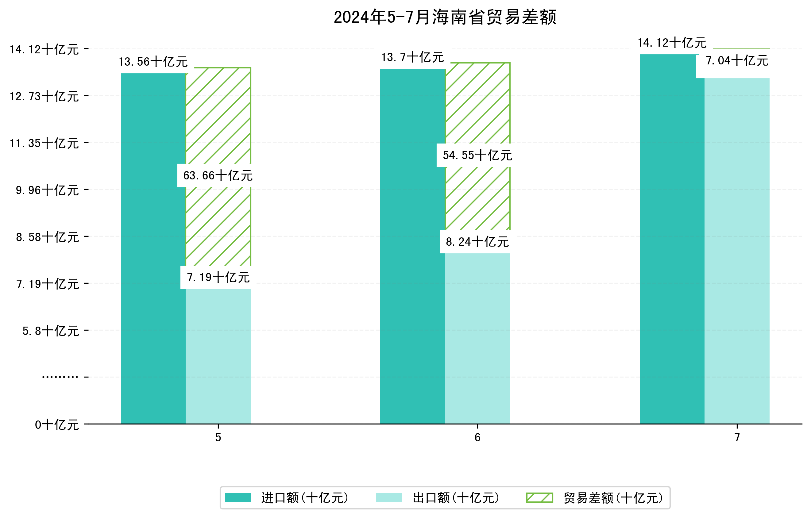以人民币计,2024年7月海南省贸易差额为7,0418,3522万元(贸易逆差),相比上月增加了47,5068,4960万元,即6,6928,4361万美元;相比上年同期增加了66,1434,6709万元,同比增加-90.38%。