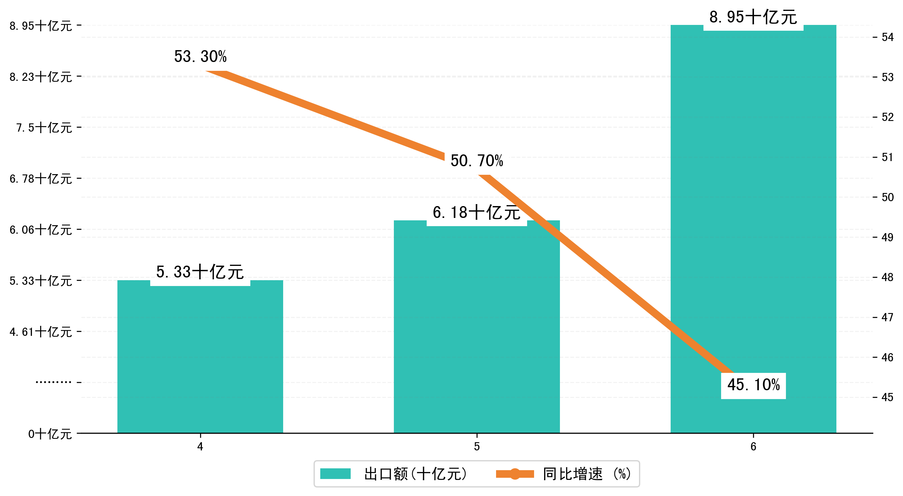 以人民币计,2023年1-6月海南省出口额为382,0359.1593万元,相比上年同期增加了117,8817.7562万元,同比增加了45.10%。