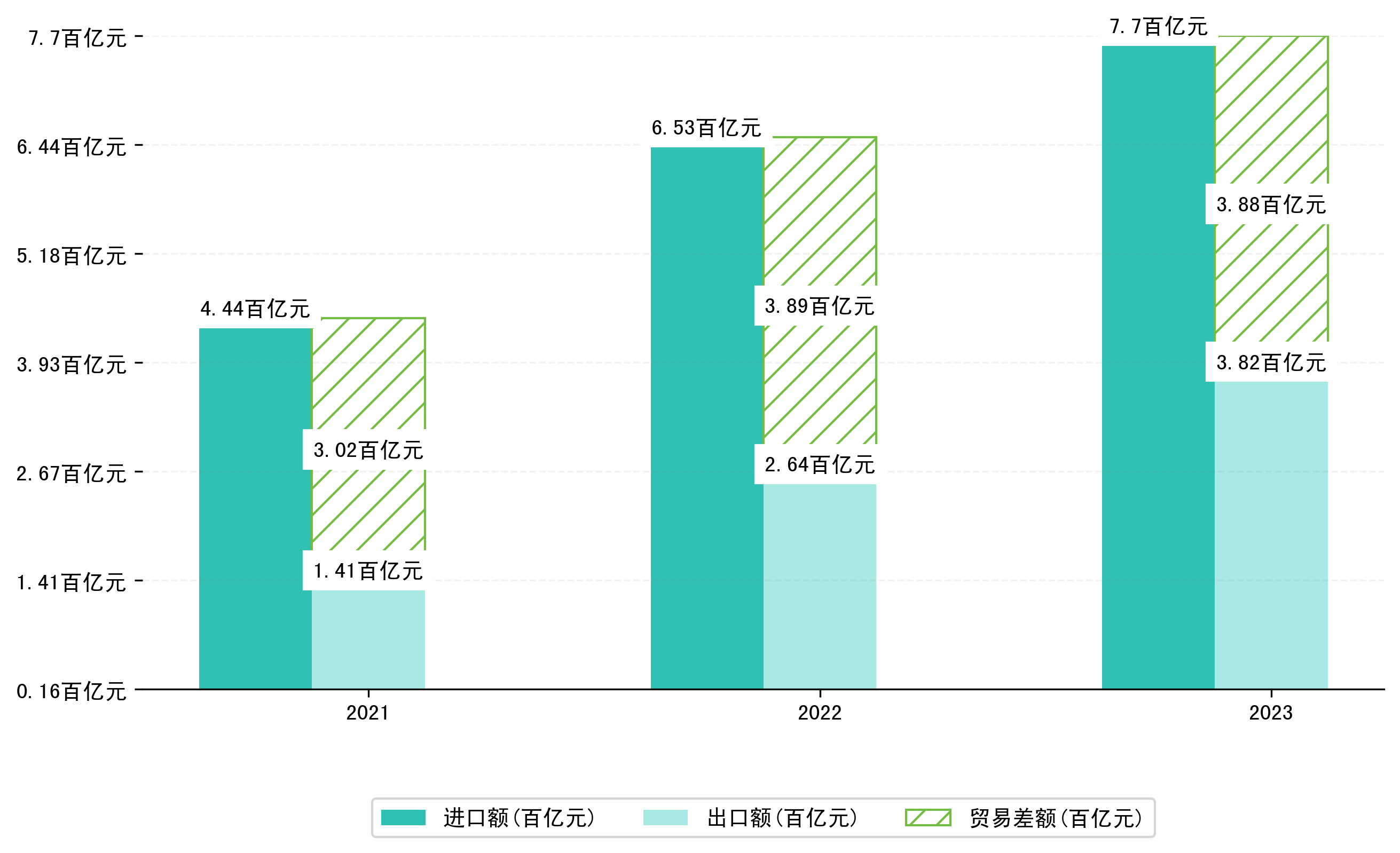 以人民币计,2023年1-6月海南省贸易差额为387,5101,9103万元(贸易逆差),相比上年同期增加了1,2150,1360万元,同比增加-0.31%。