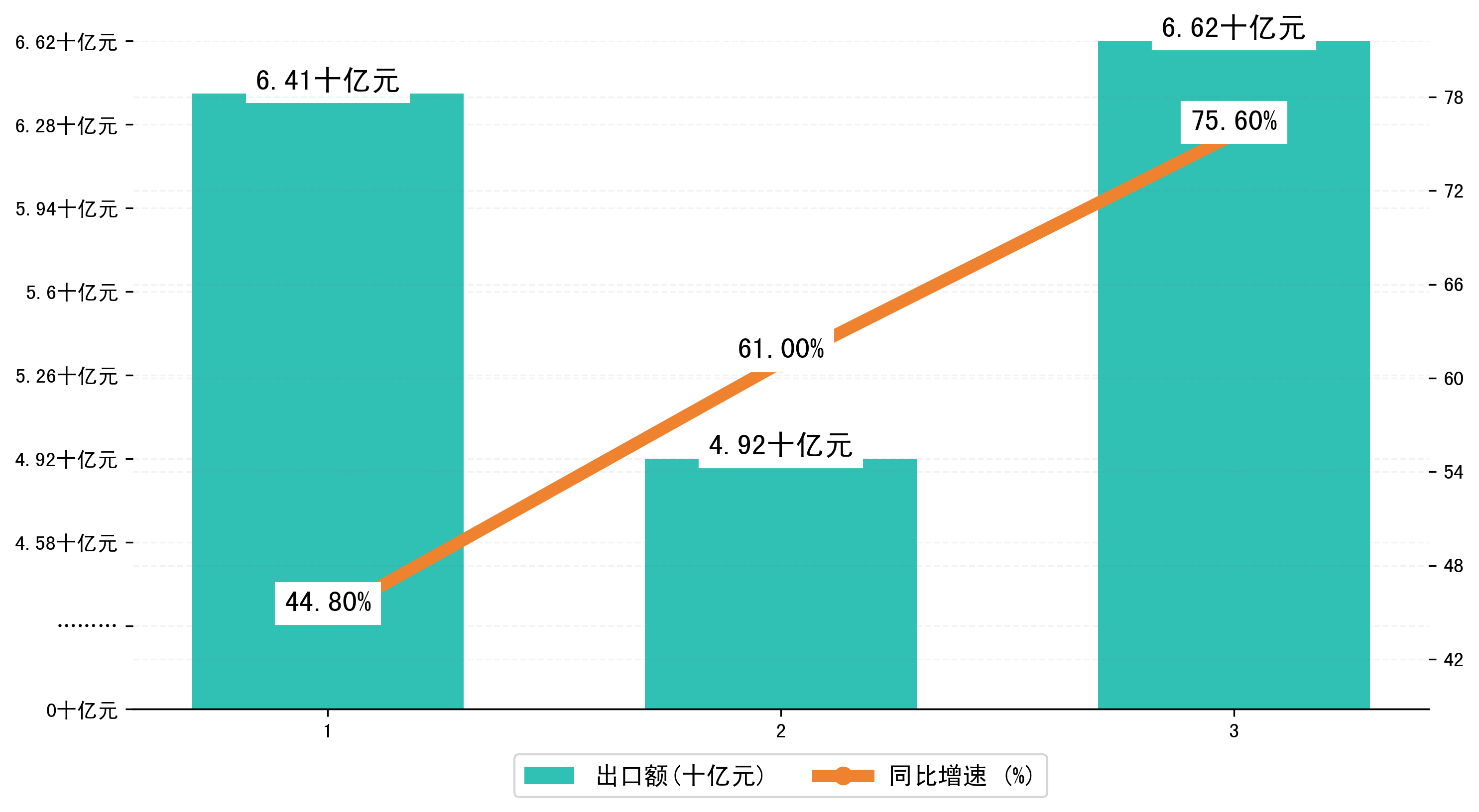 以人民币计,2023年1-3月海南省出口额为179,5205.7036万元,相比上年同期增加了77,3184.7413万元,同比增加了75.60%。