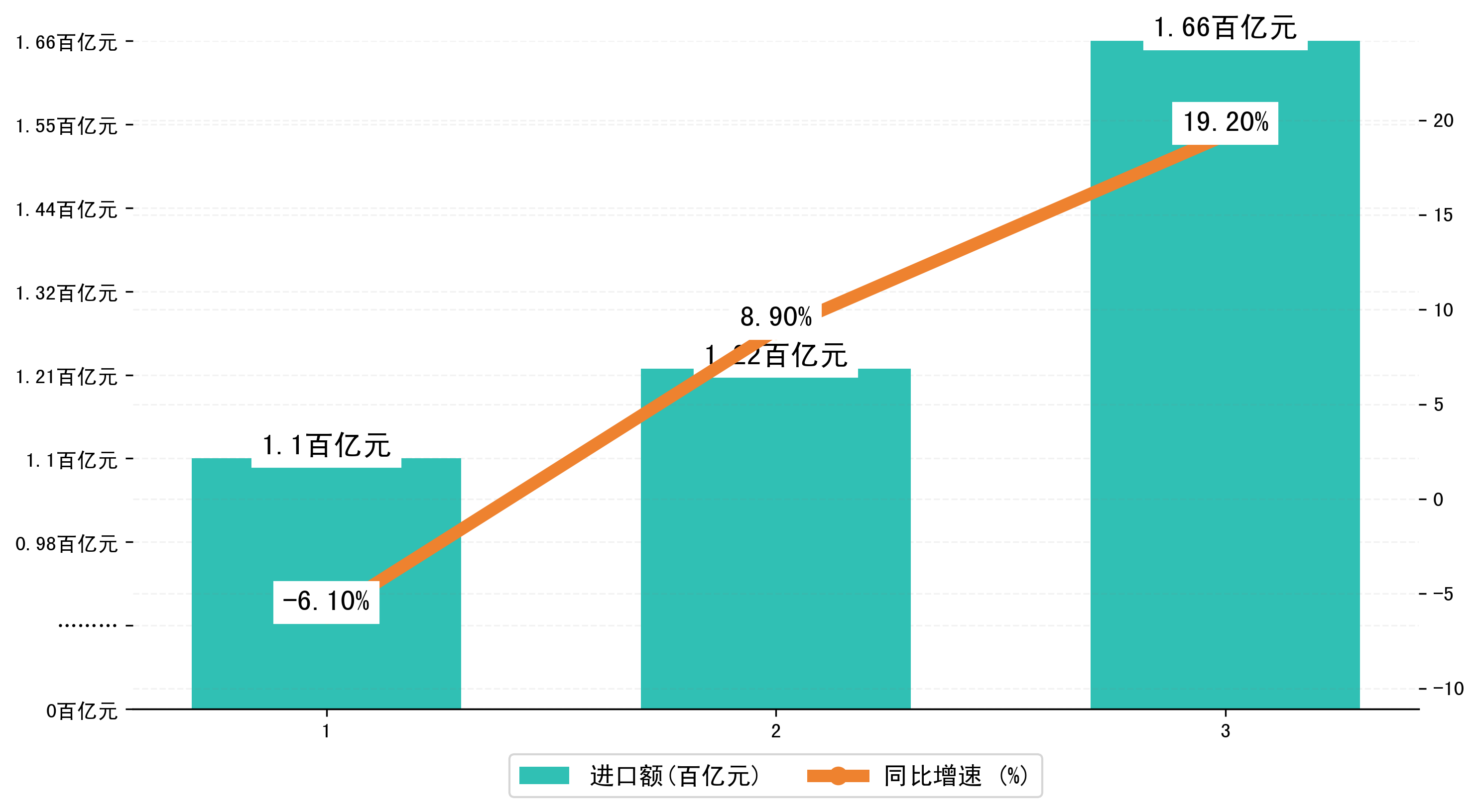 以人民币计,2023年3月海南省进口额为166,1616.4784万元,相比上月增加了44,2467.2458万元;相比上年同期增加了42,8871.8374万元,同比增加了19.20%。