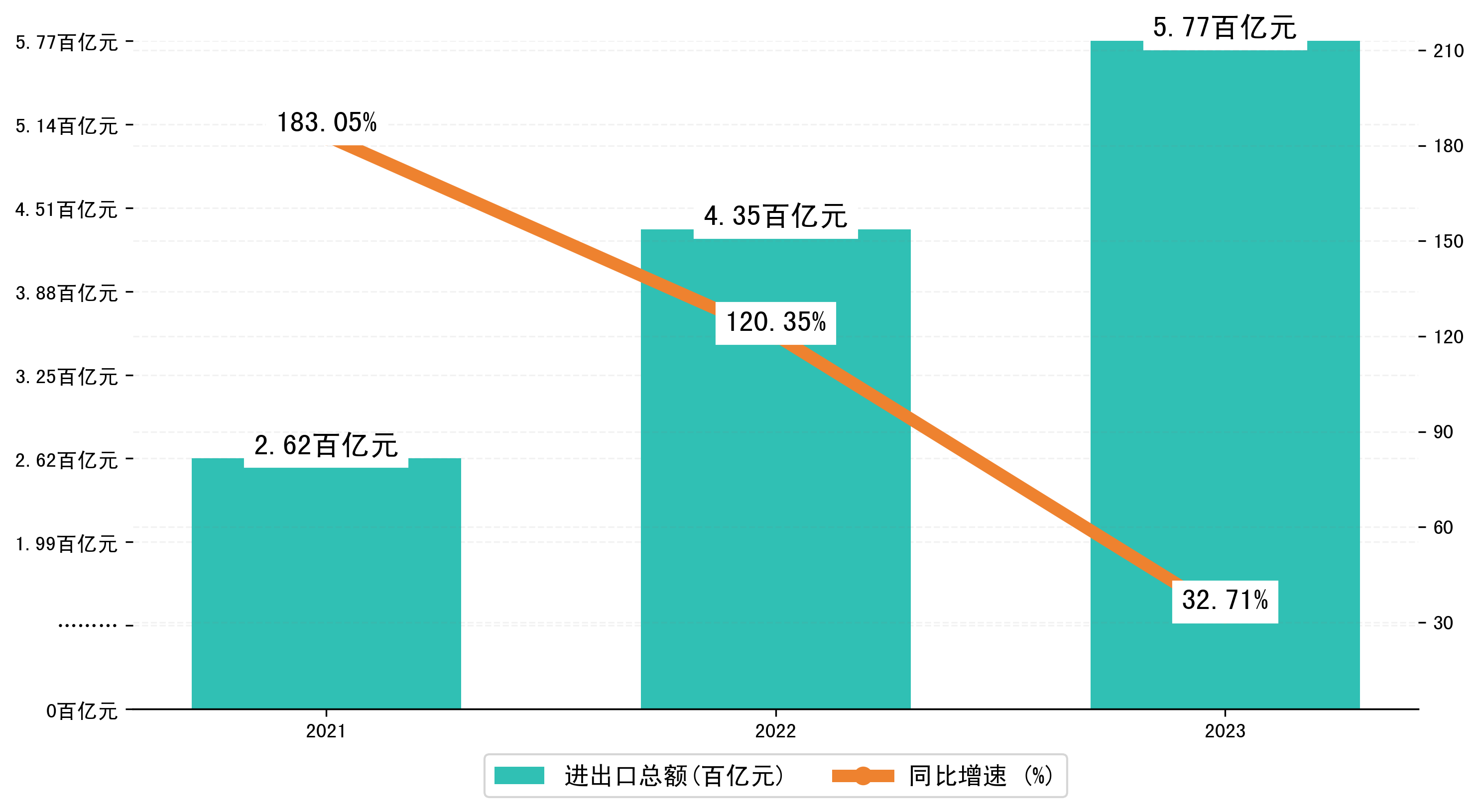 以人民币计,2023年1-3月海南省进出口总额为577,4416.9562万元,相比上年同期增加了142,3281.2763万元,同比增加了32.50%。