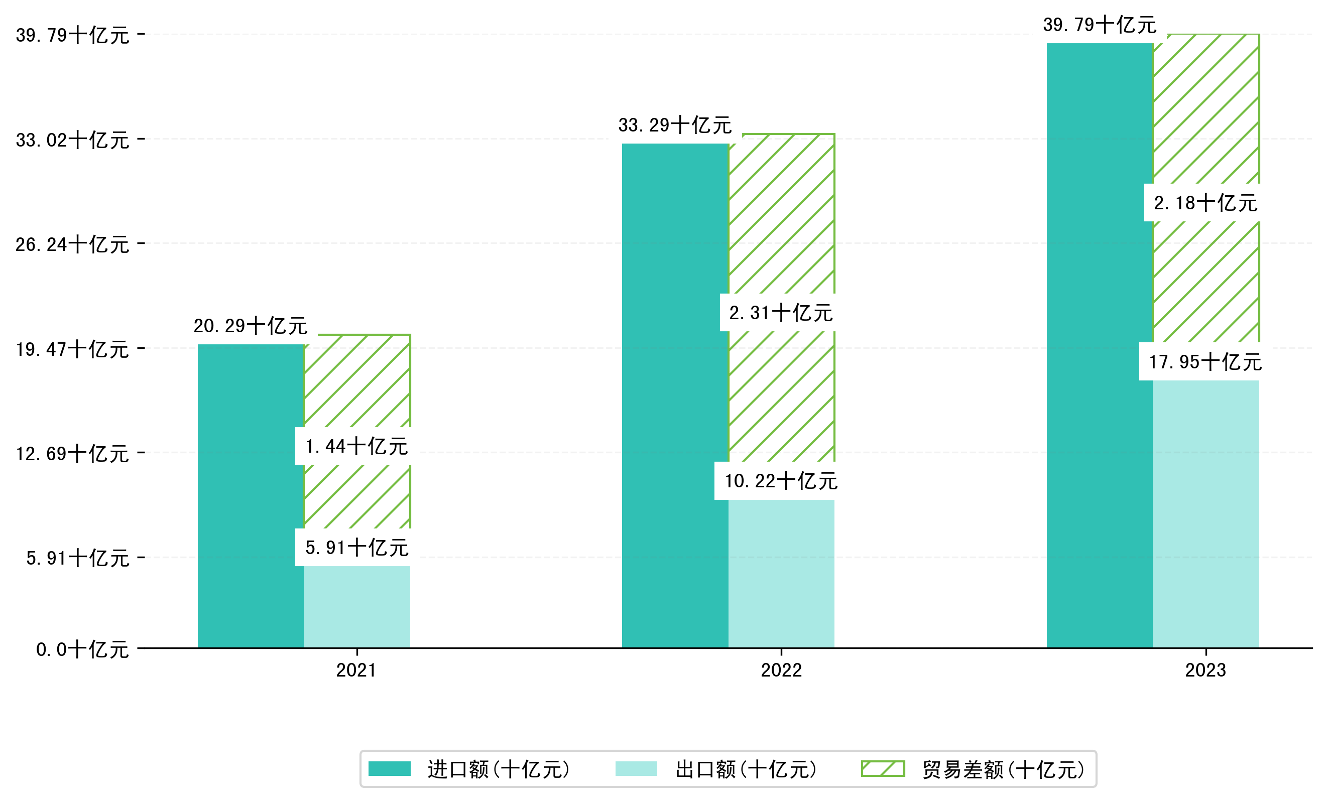 以美元计,2023年1-3月海南省贸易差额为31,8578,9832万美元(贸易逆差),相比上年同期增加了4,3994,0960万美元,同比增加-12.13%。