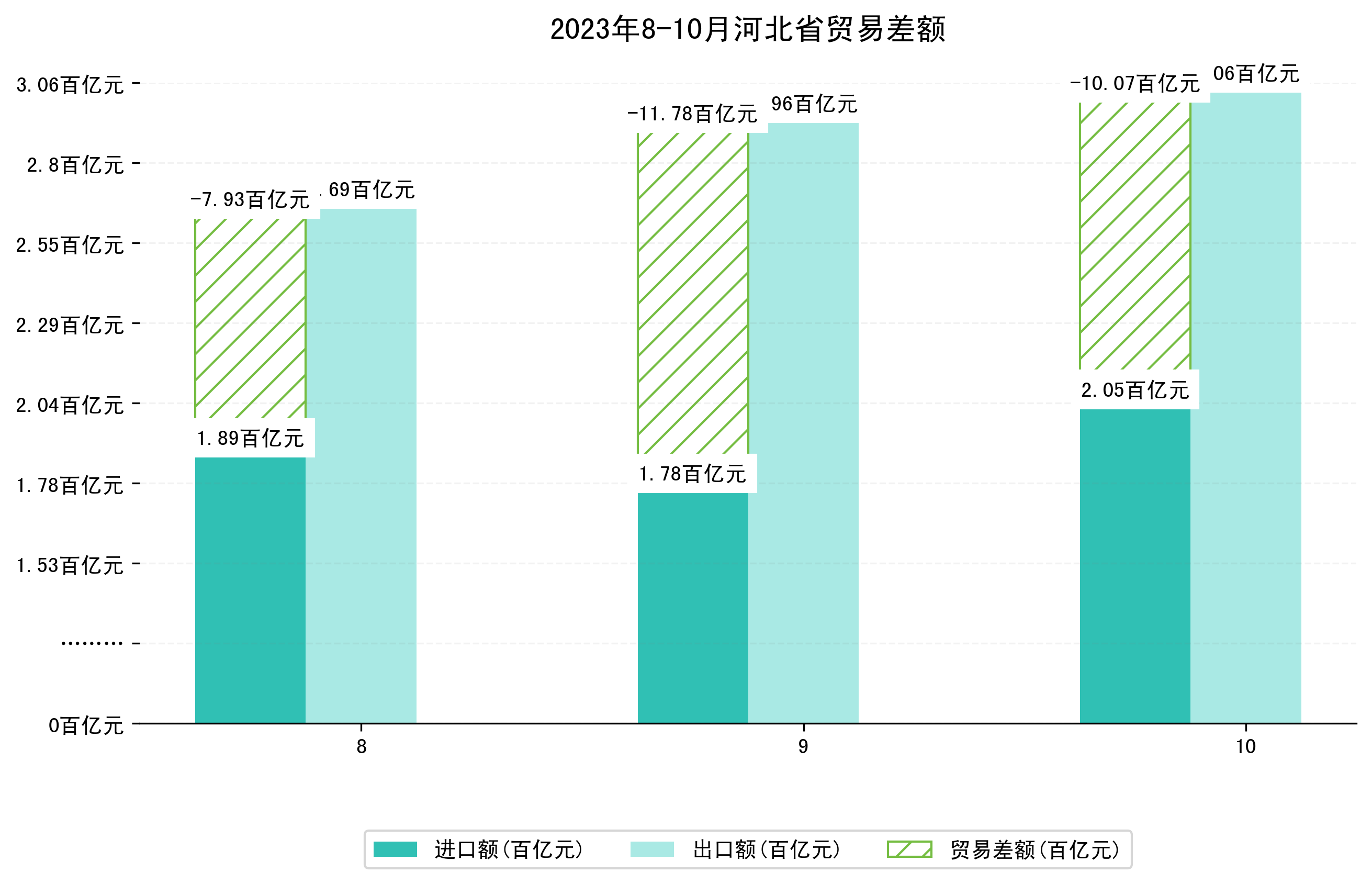 (图四:2023年8-10月河北省贸易差额)