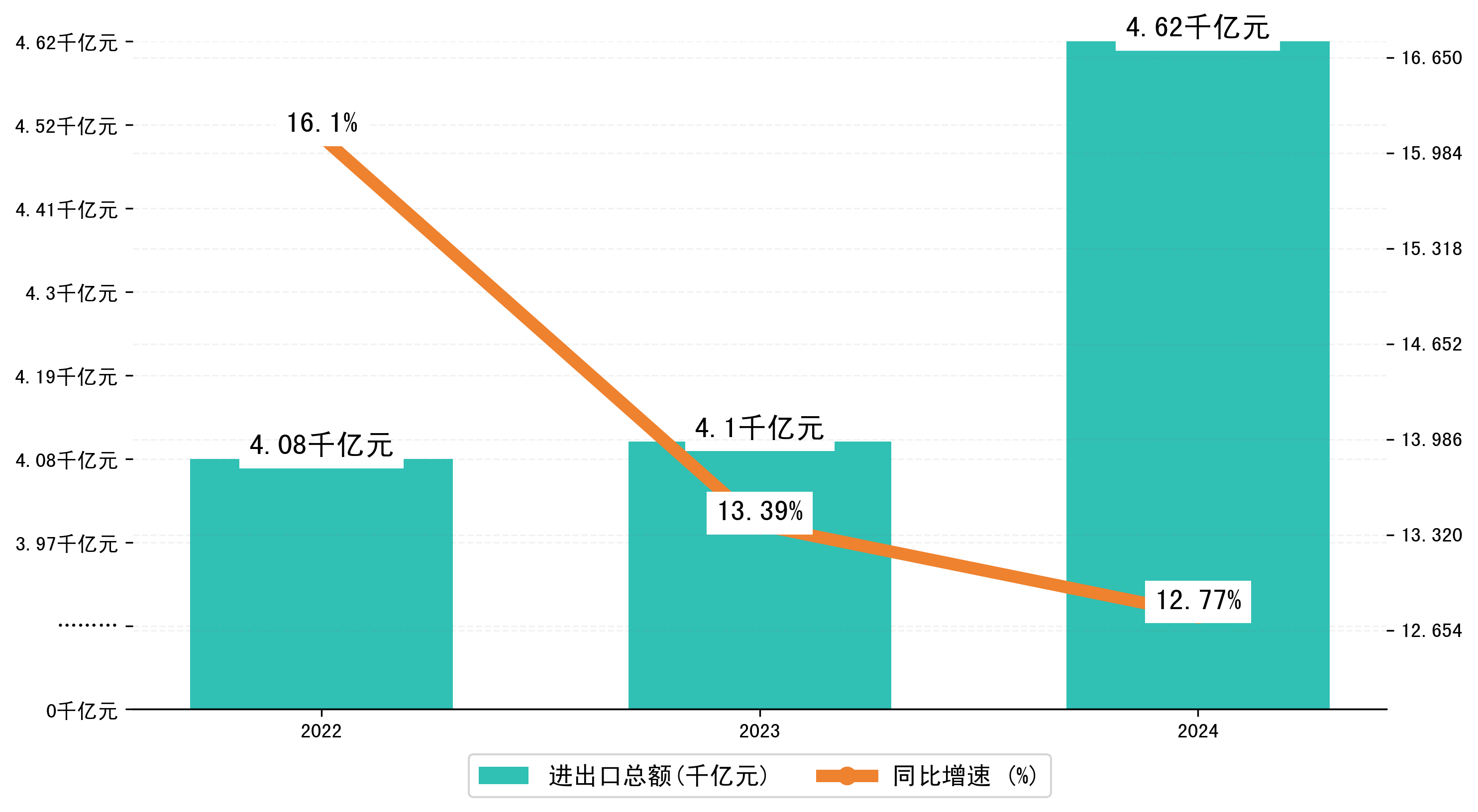 以人民币计,2024年1-9月河北省进出口总额为4624,2778.7372万元,相比上年同期增加了523,7857.6379万元,同比增加了12.90%。