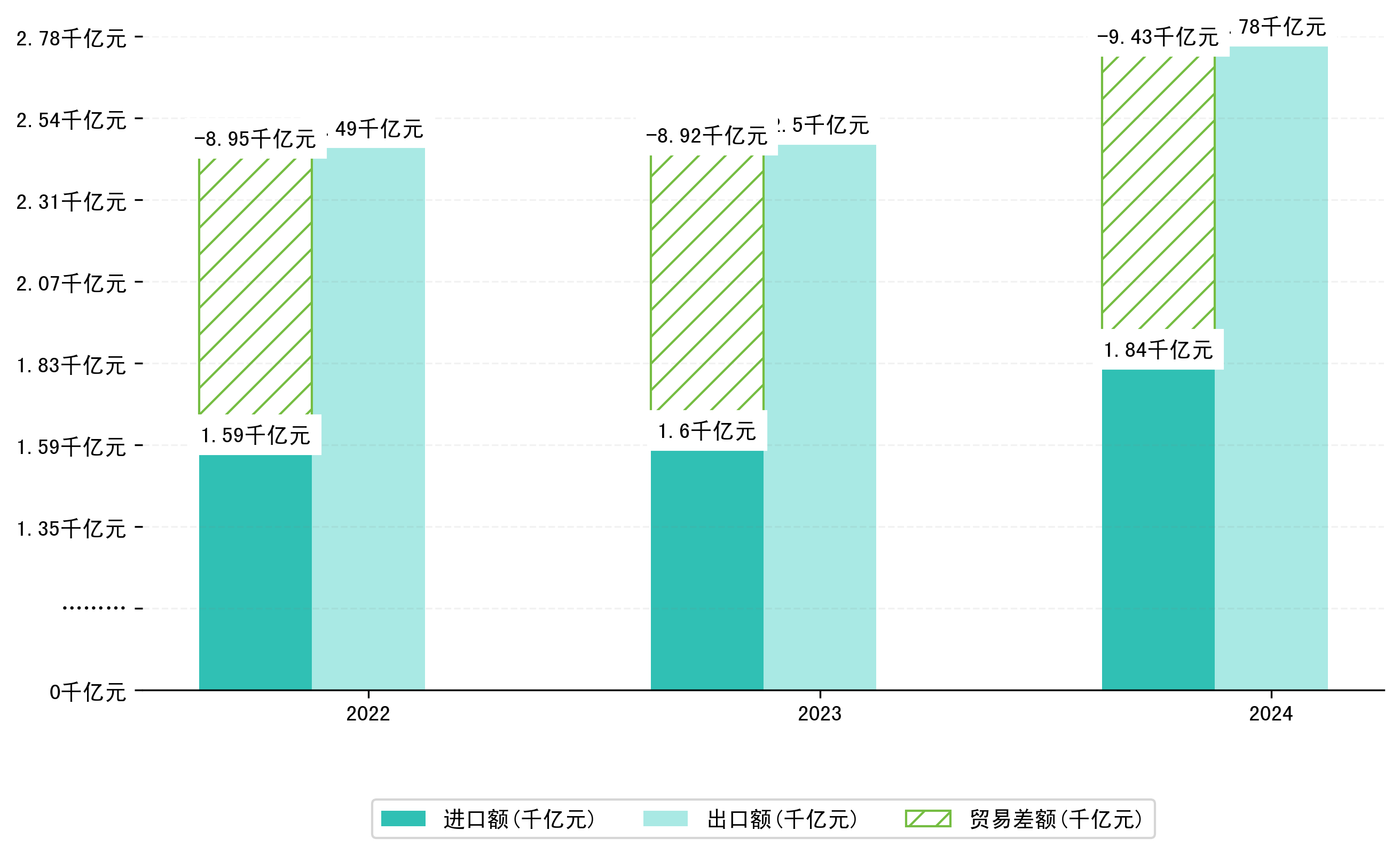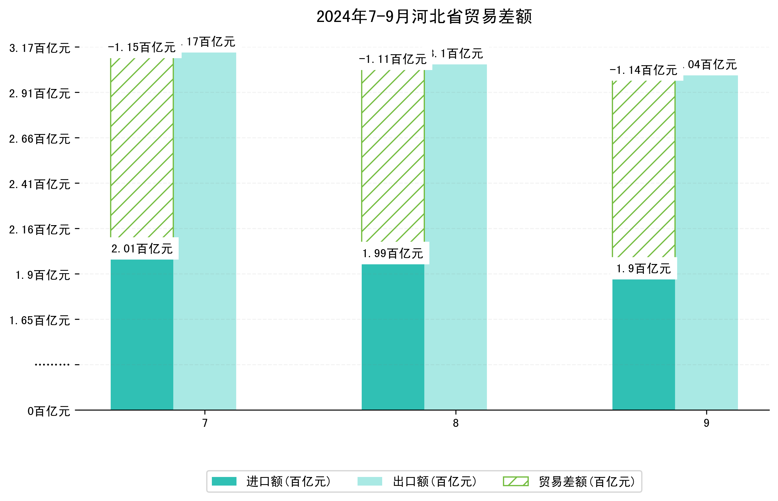 以美元计,2024年1-9月河北省贸易差额为132,5729,1865万美元(贸易顺差),相比上年同期增加了4,8868,7493万美元,同比增加3.83%。