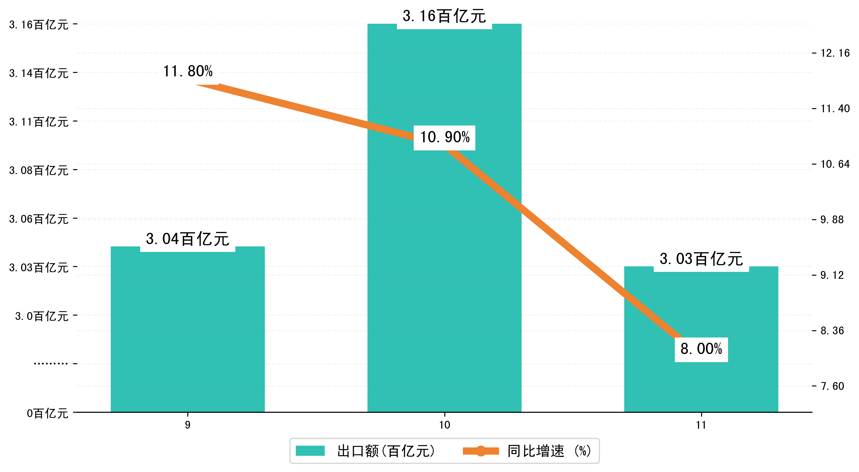 以人民币计,2024年11月河北省出口额为302,9911.4916万元,相比上月减少了13,5001.4857万元;相比上年同期减少了52,2358.2704万元,同比增加了8.00%。