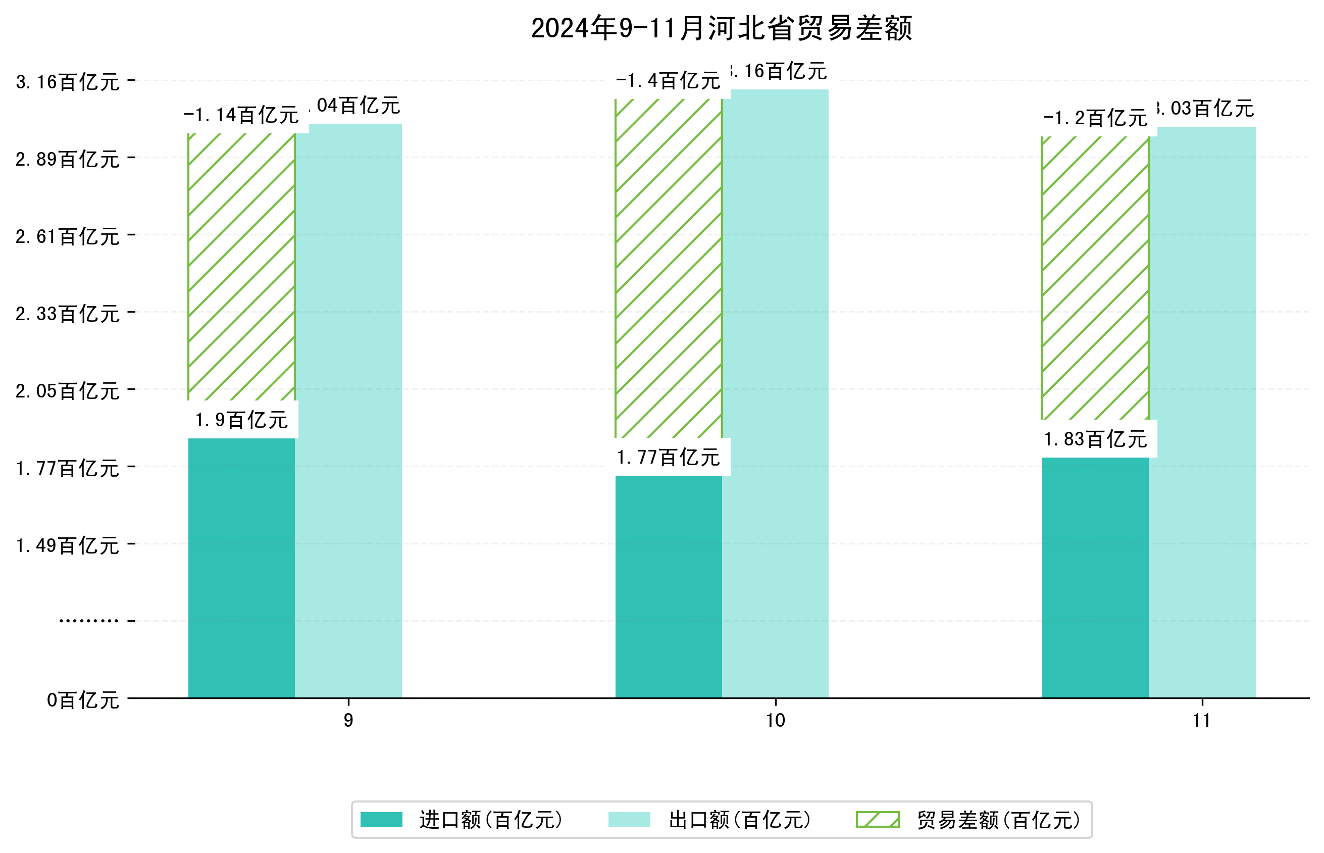 一、2024年11月河北省单月出口总额及进出口差额统计分析
