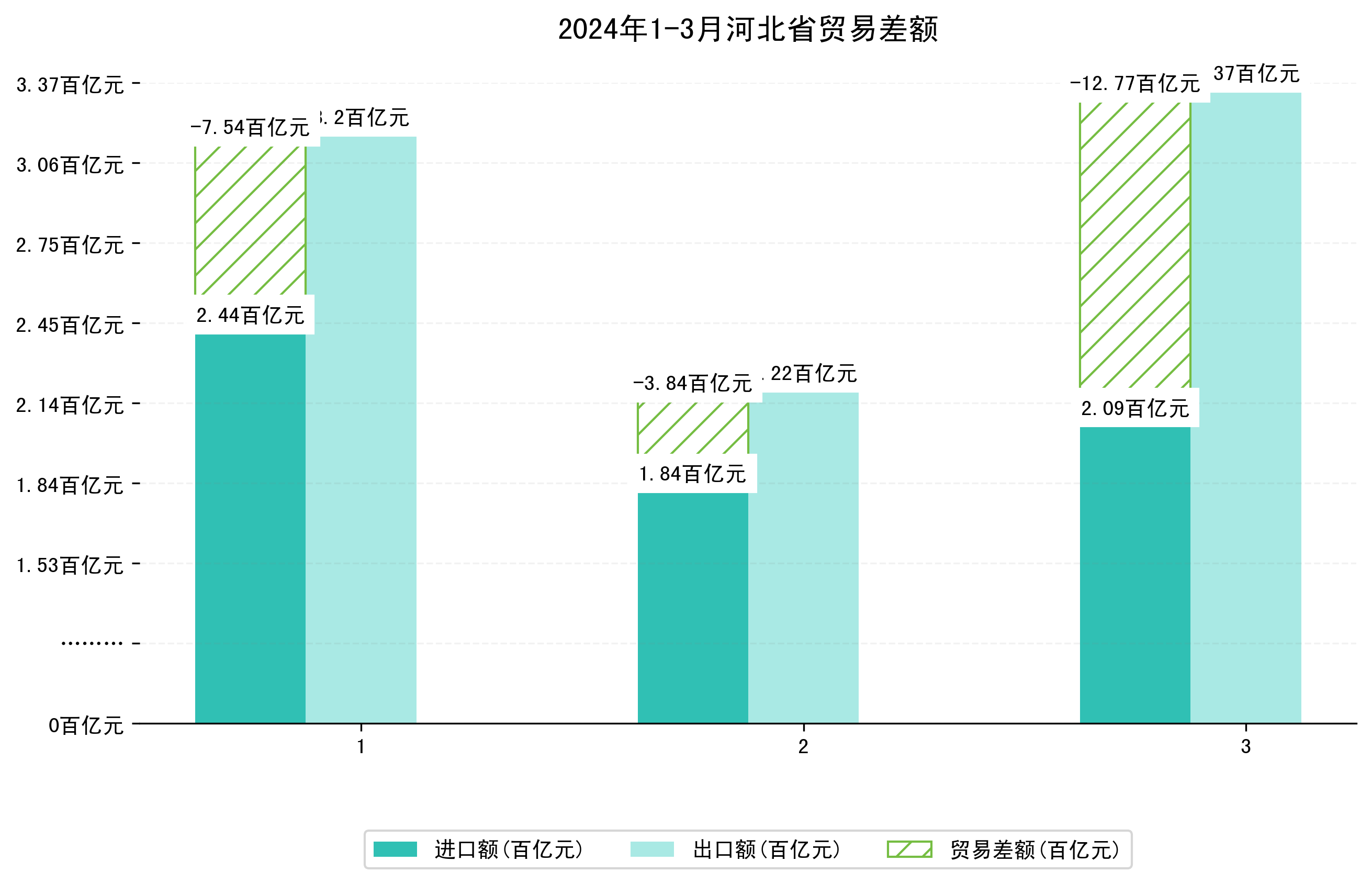 一、2024年3月河北省单月出口总额及进出口差额统计分析