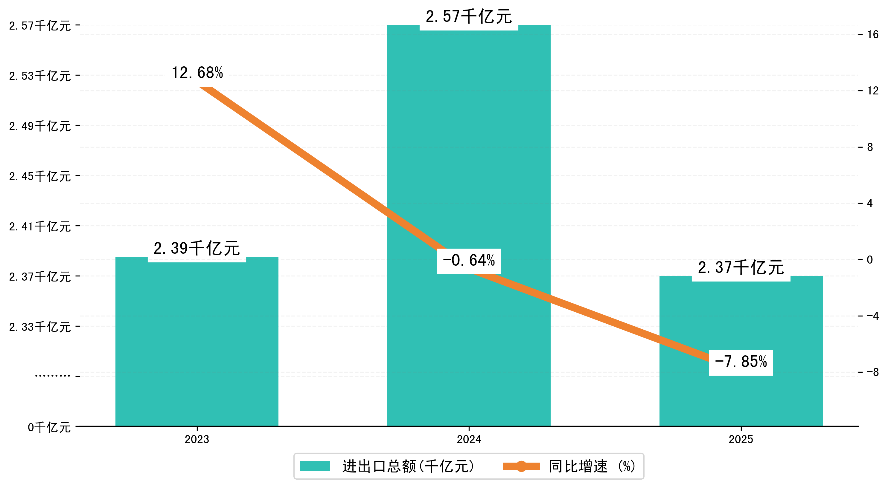 以人民币计,2025年1-5月河北省进出口总额为2372,0783.5954万元,相比上年同期减少了202,1875.2845万元,同比减少了-7.30%。