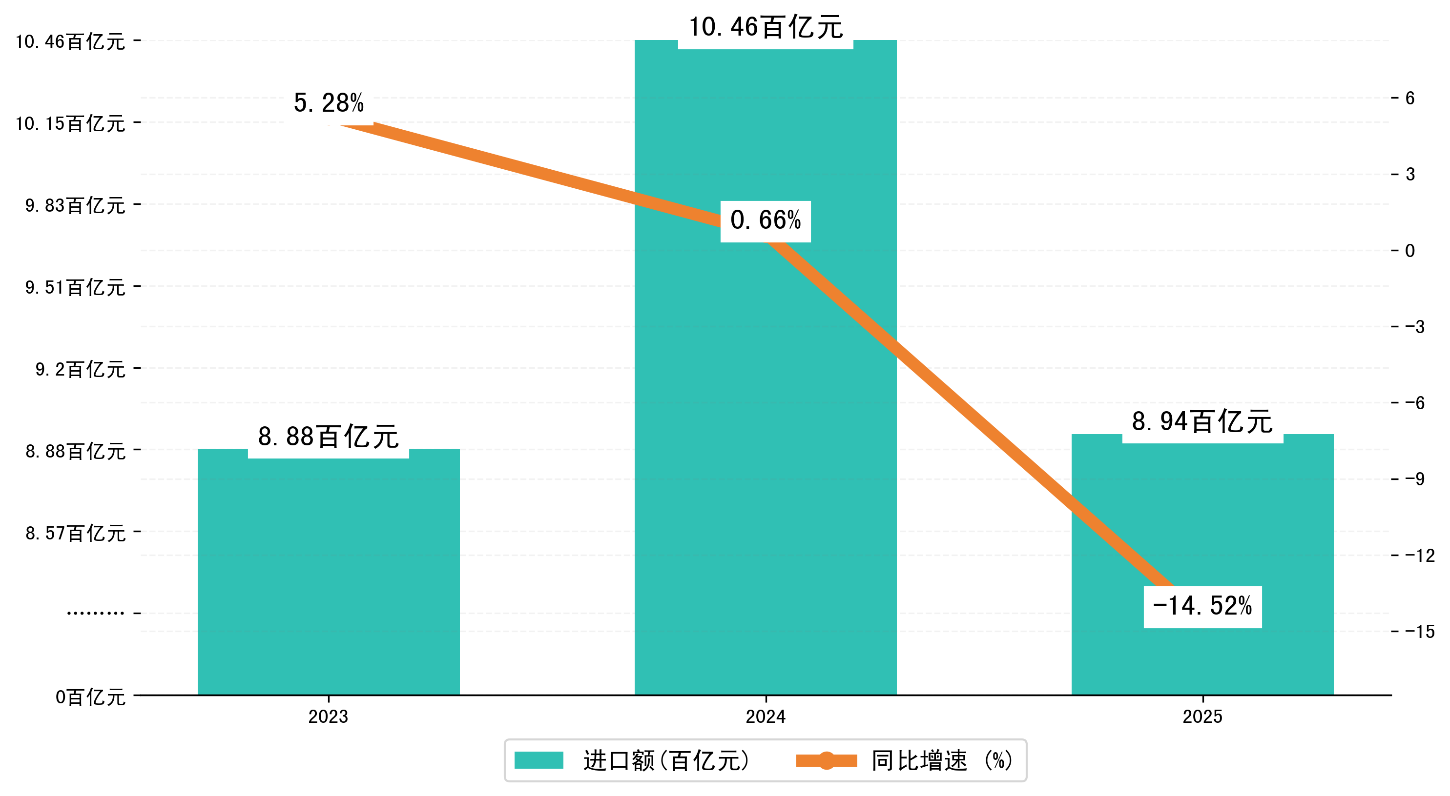 以人民币计,2025年5月河北省进口额为212,7593.4696万元,相比上月增加了60,5201.701万元;相比上年同期减少了9,0620.884万元,同比减少了-14.10%。